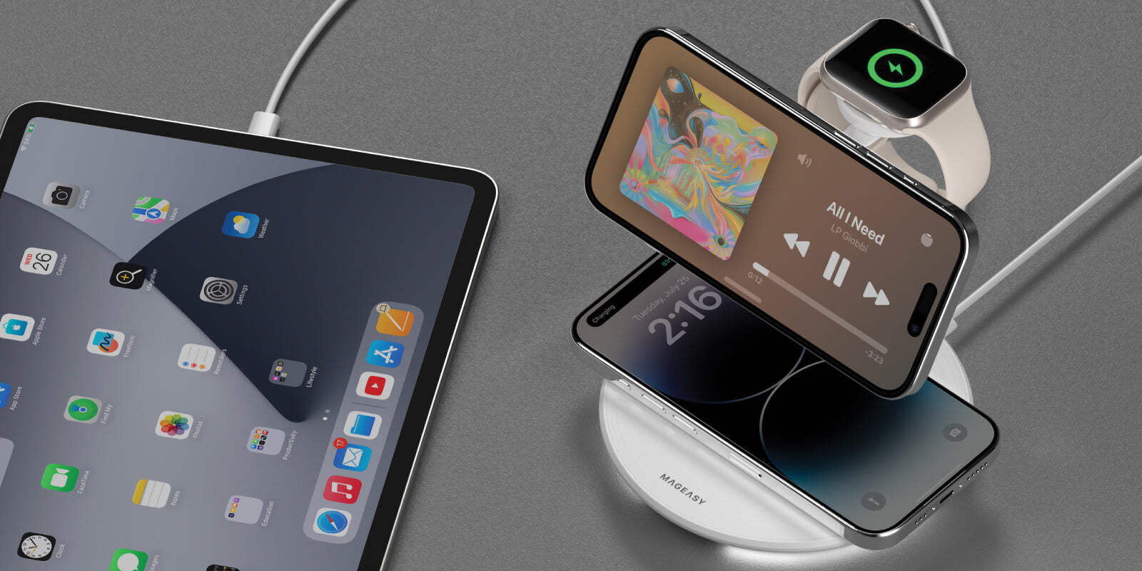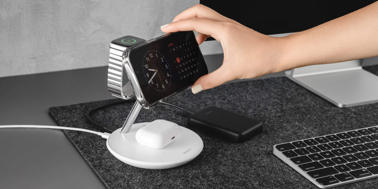 Charges 4 devices simultaneously: iPhone, watch, AirPods, and any device with a Type-C input.