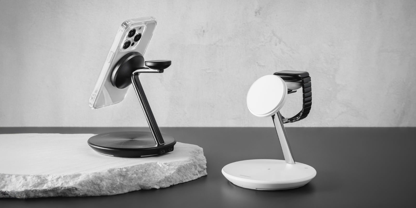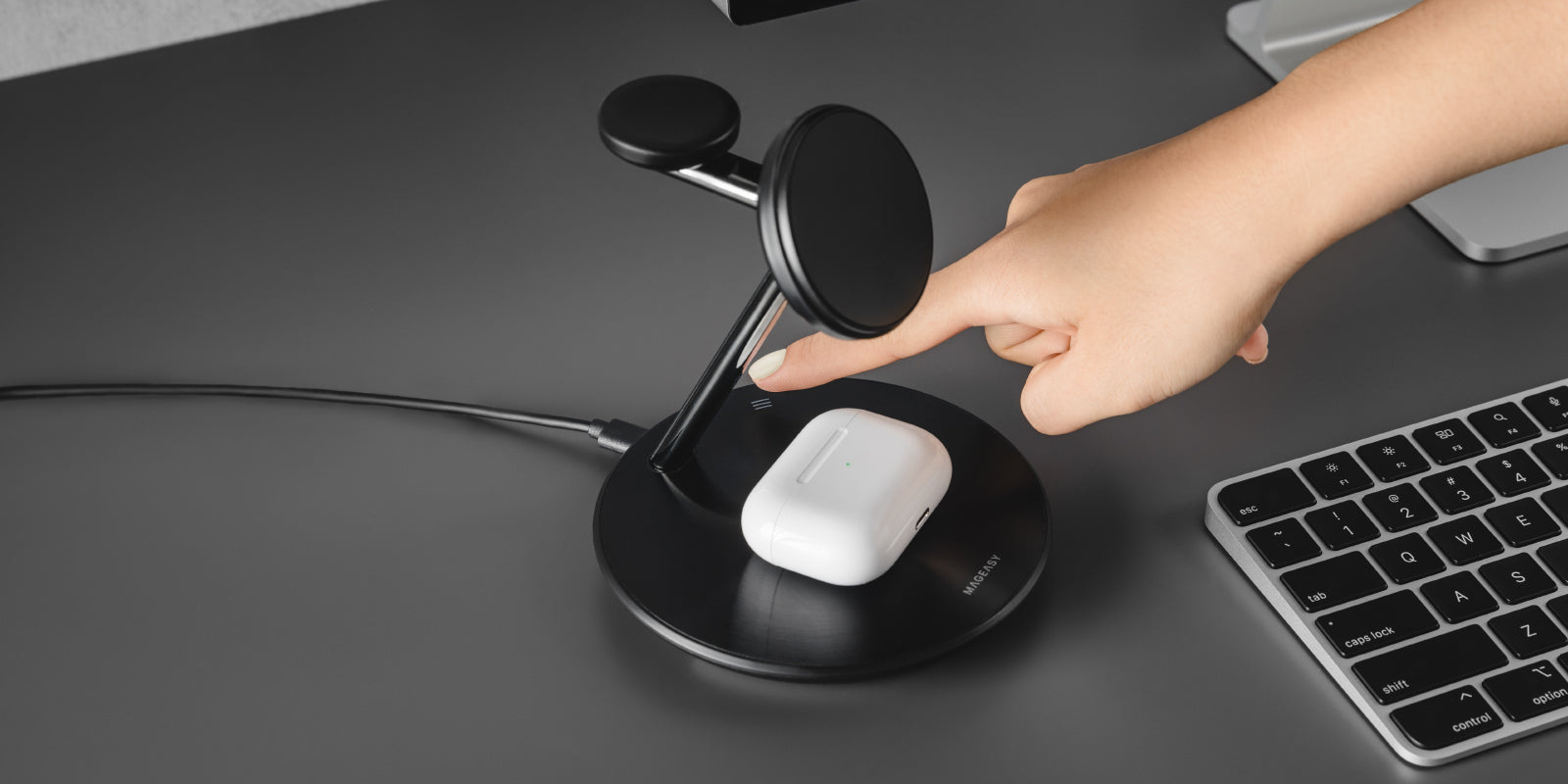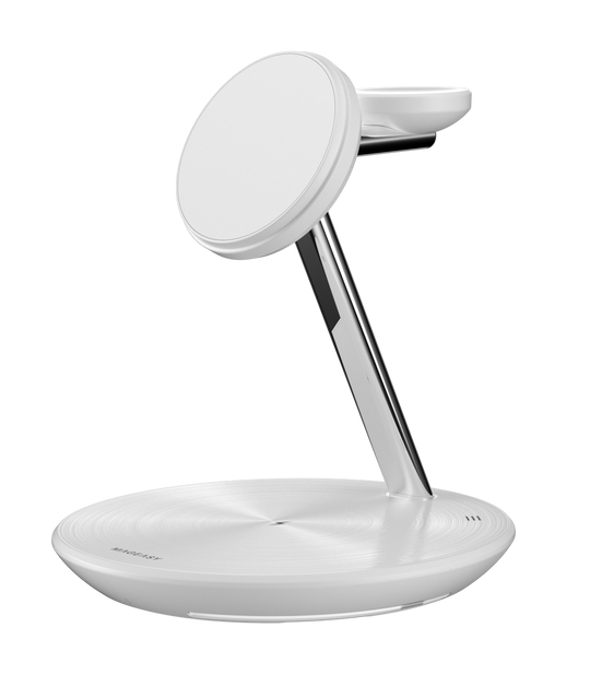 A uniquely designed wireless charger with useful features.