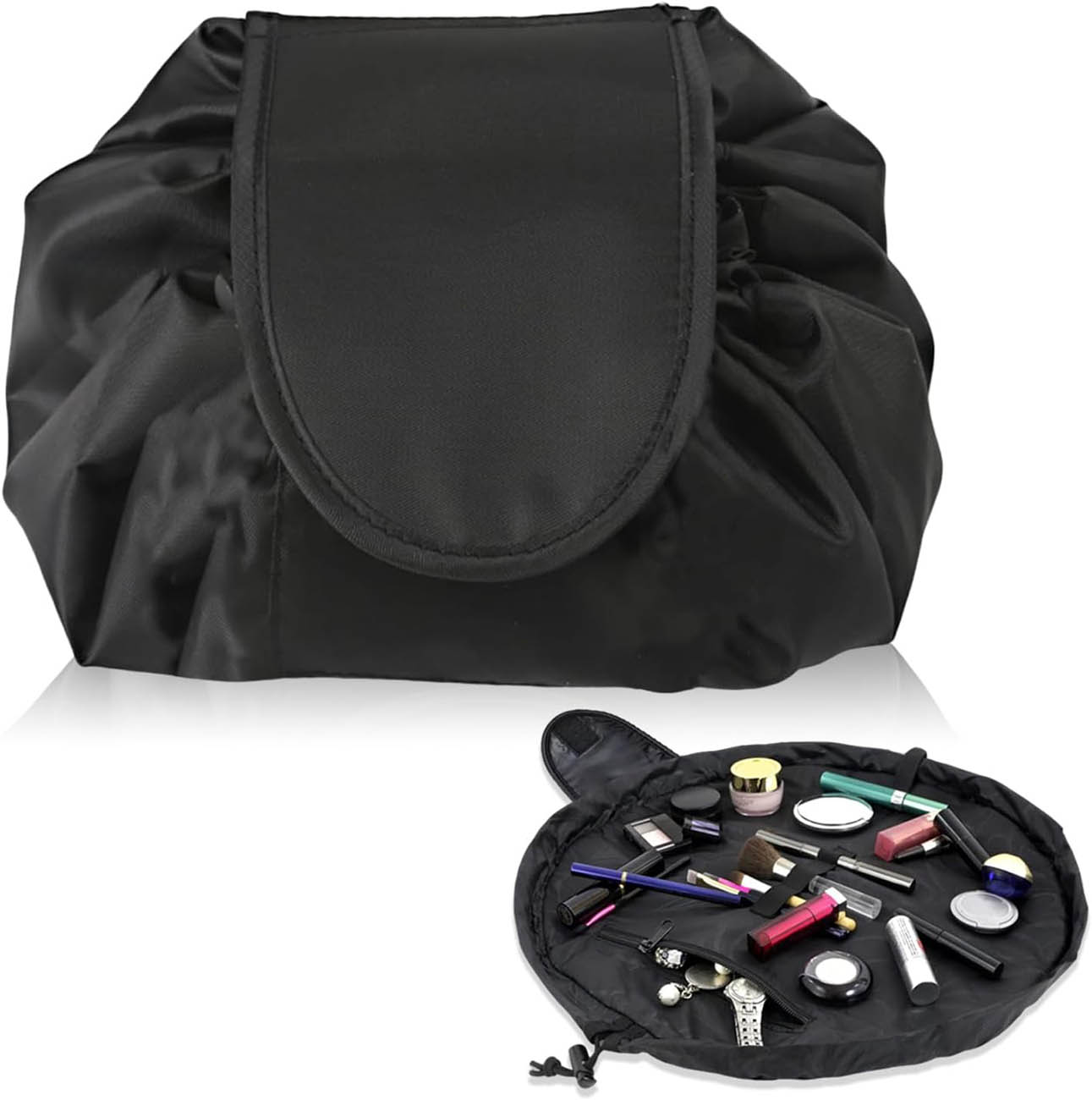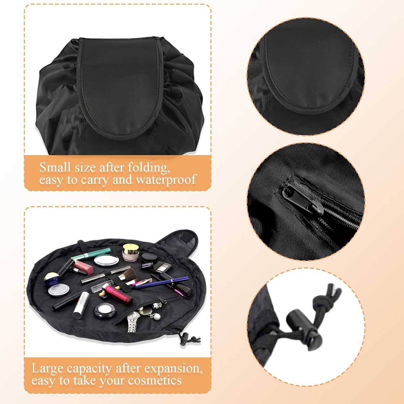 Includes inner pockets to keep makeup organized and prevent clutter.