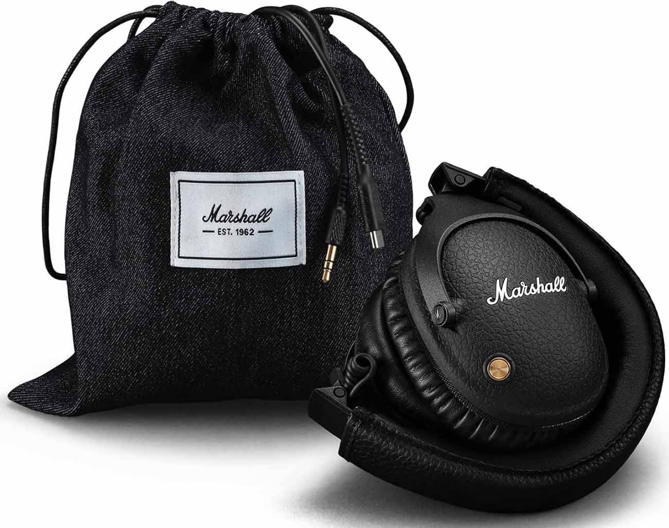 Features a gold control knob to manage playback .. adjust volume .. and answer calls.