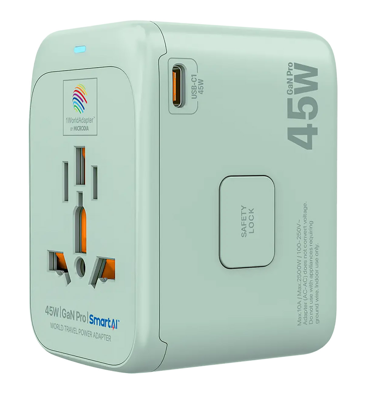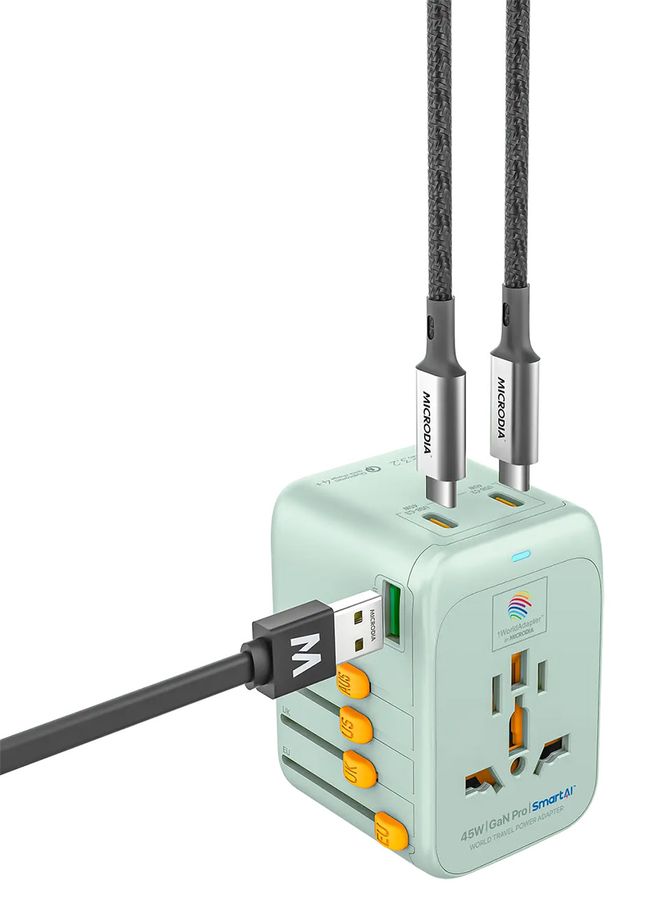 Microdia Travel Adapter / 3 Type-C Ports + 1 USB Port / Universal / 45W Power / Green in Qatar