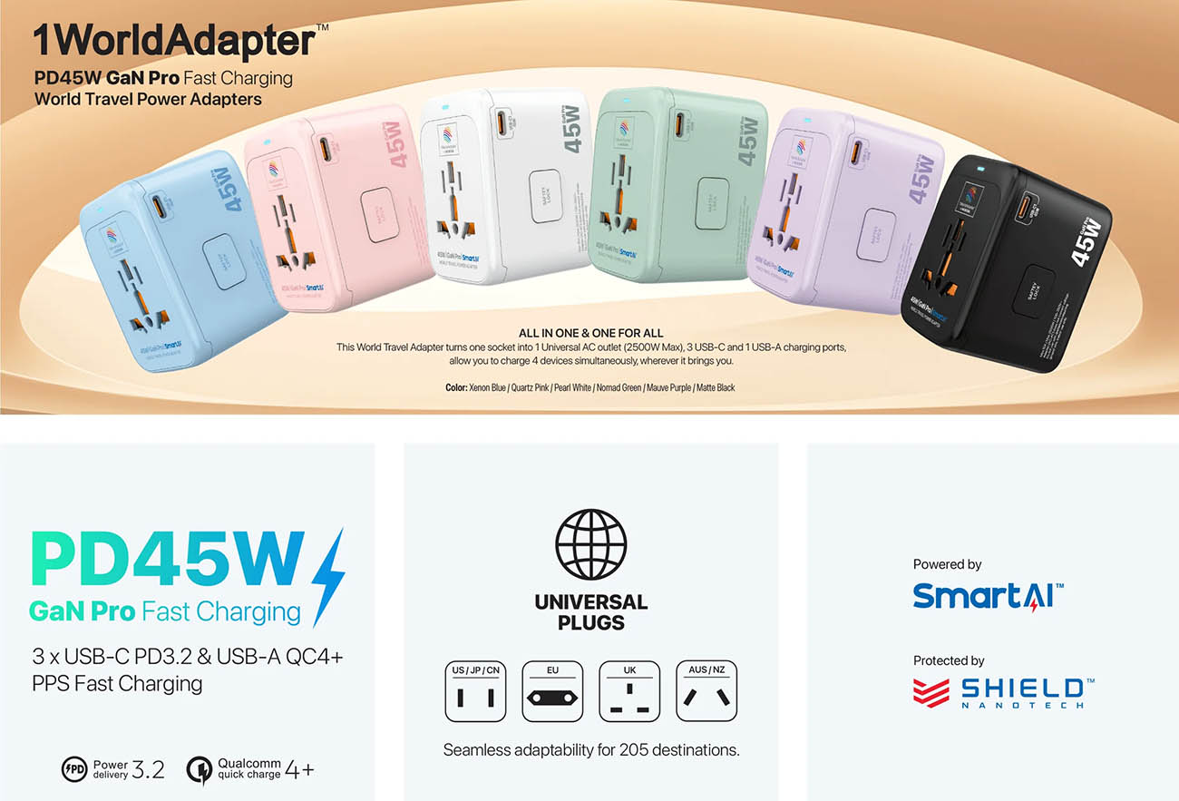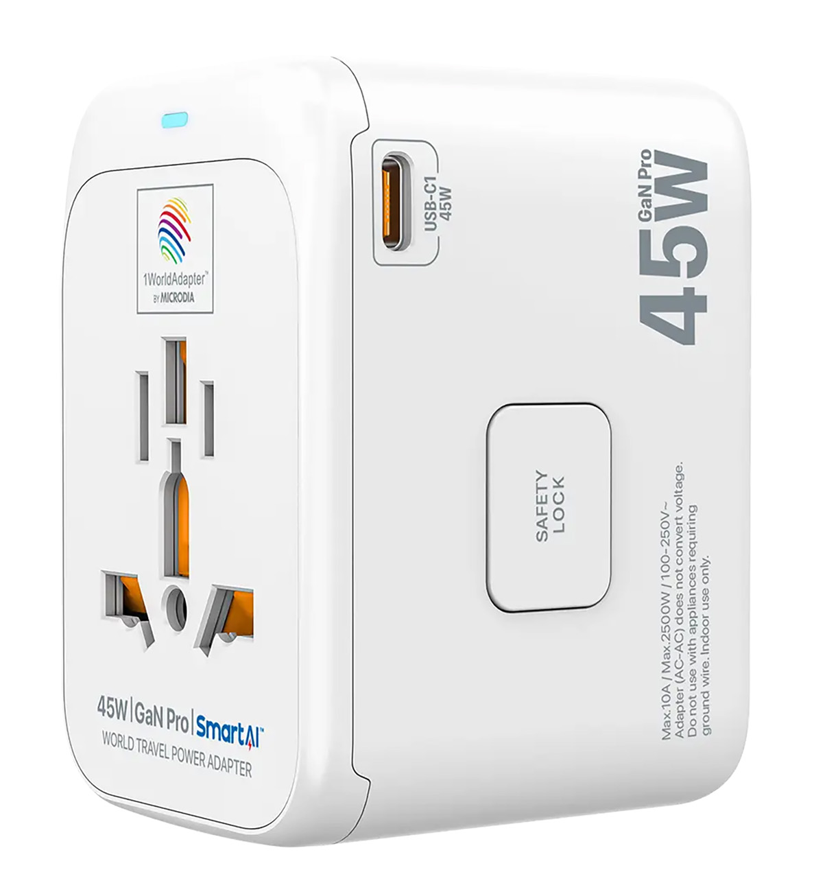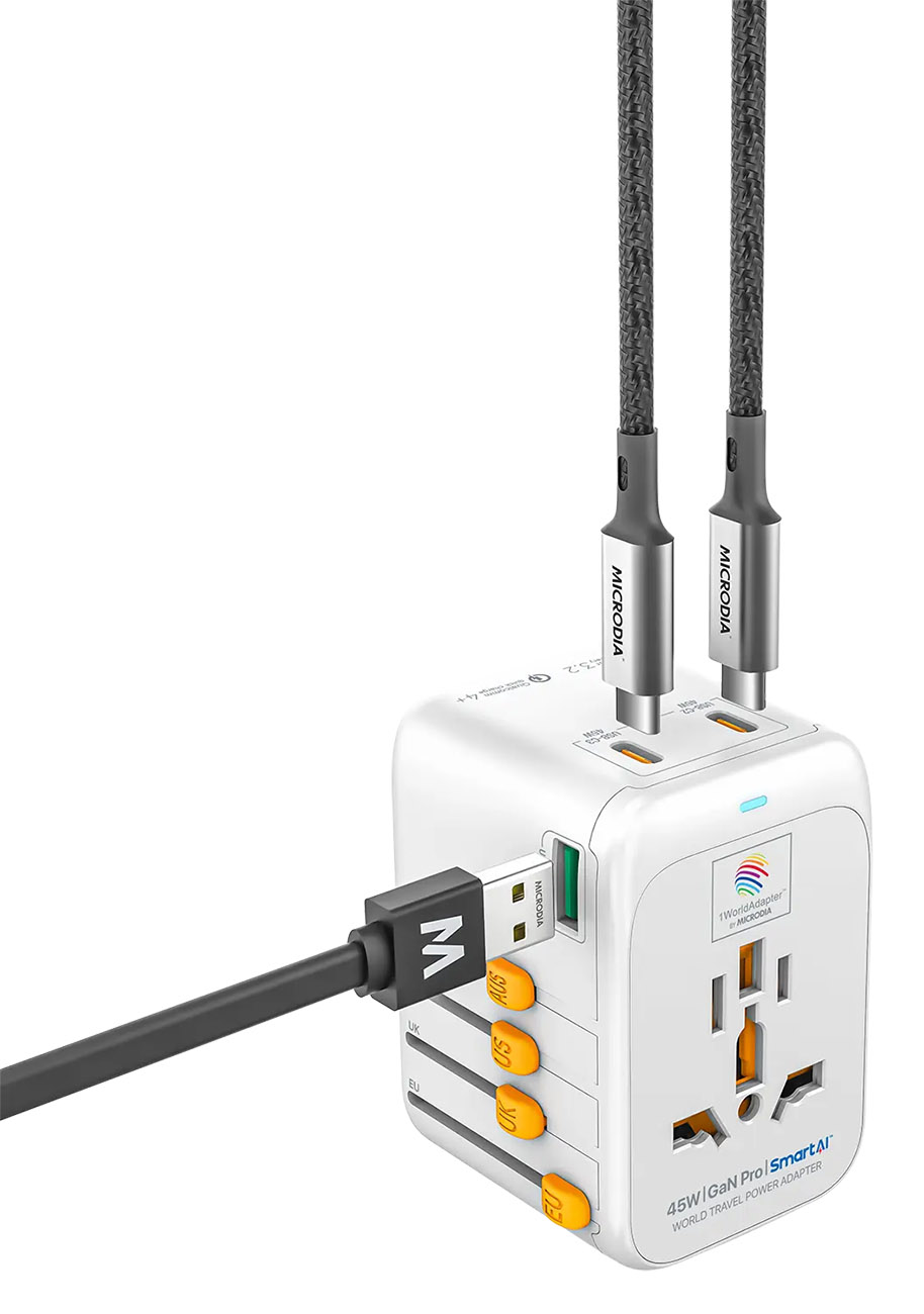 Microdia Travel Adapter / 3 Type-C Ports + 1 USB Port / Universal / 45W Power / White in Qatar