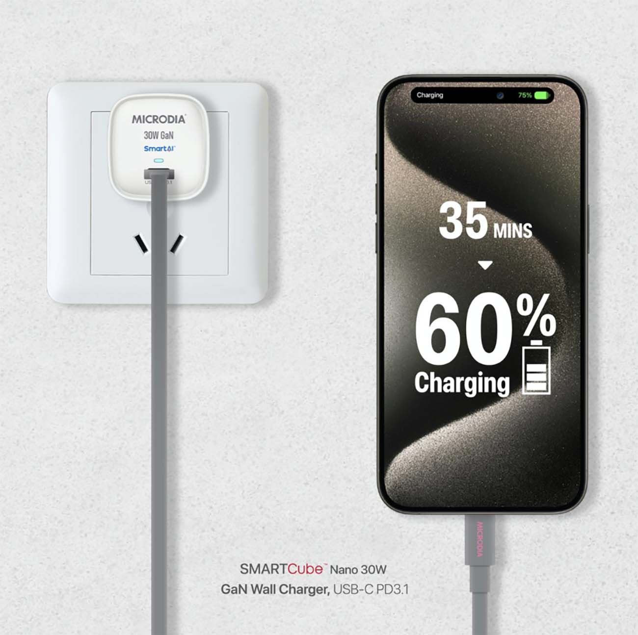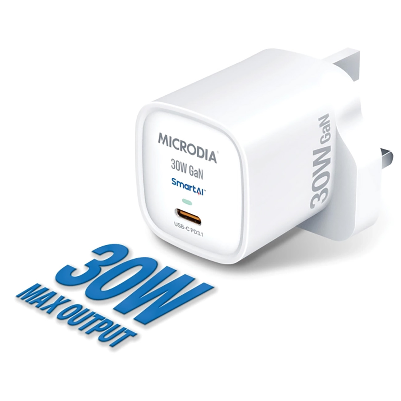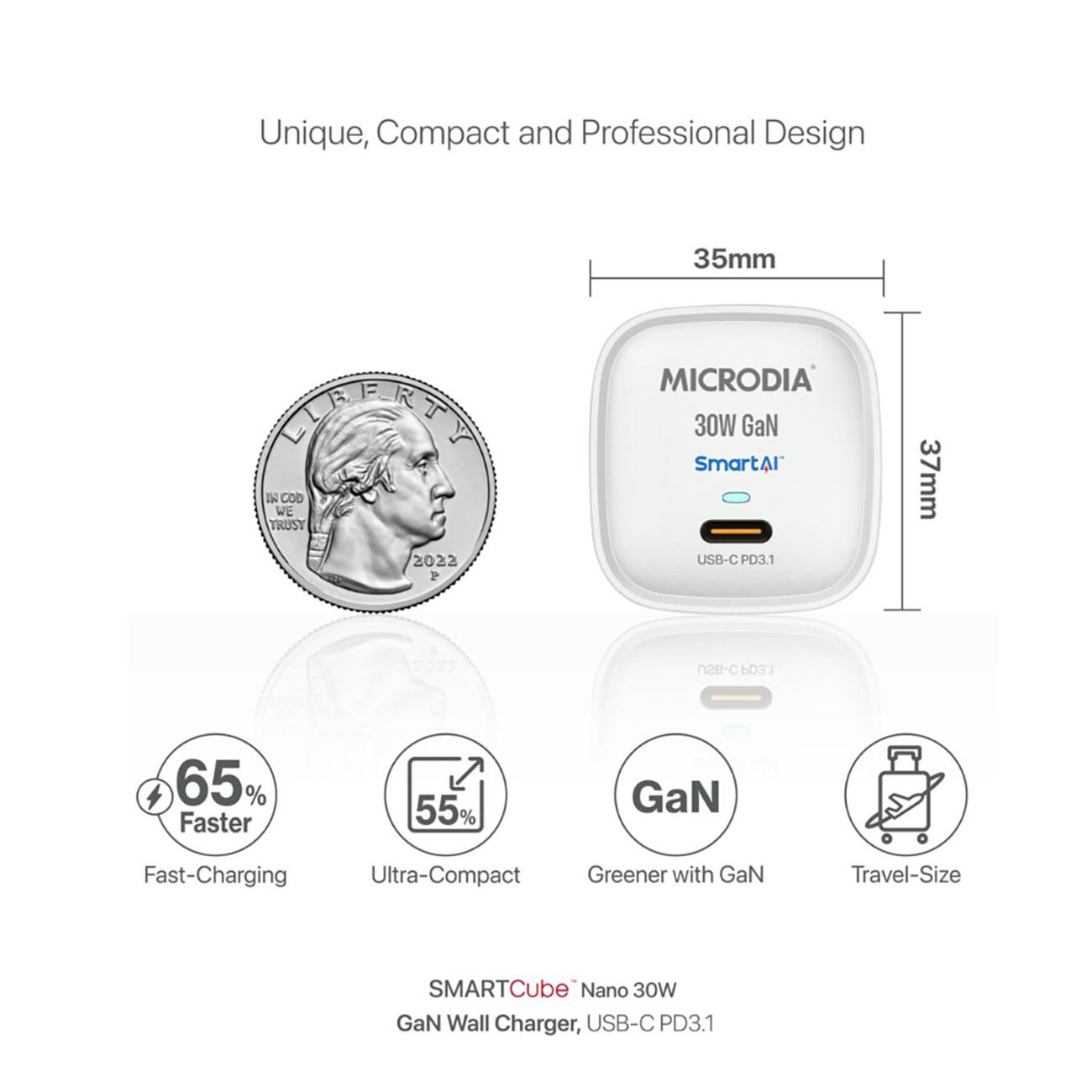 Microdia SmartCube Charger / 30W Power / With Type-C Port / Compact Size / White in Qatar