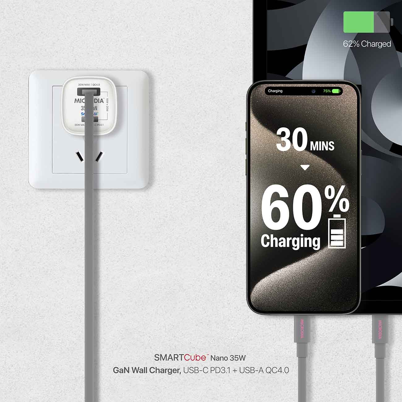 Microdia SmartCube Charger / 35W Power / With Type-C + USB Ports / Compact Size / Black in Qatar