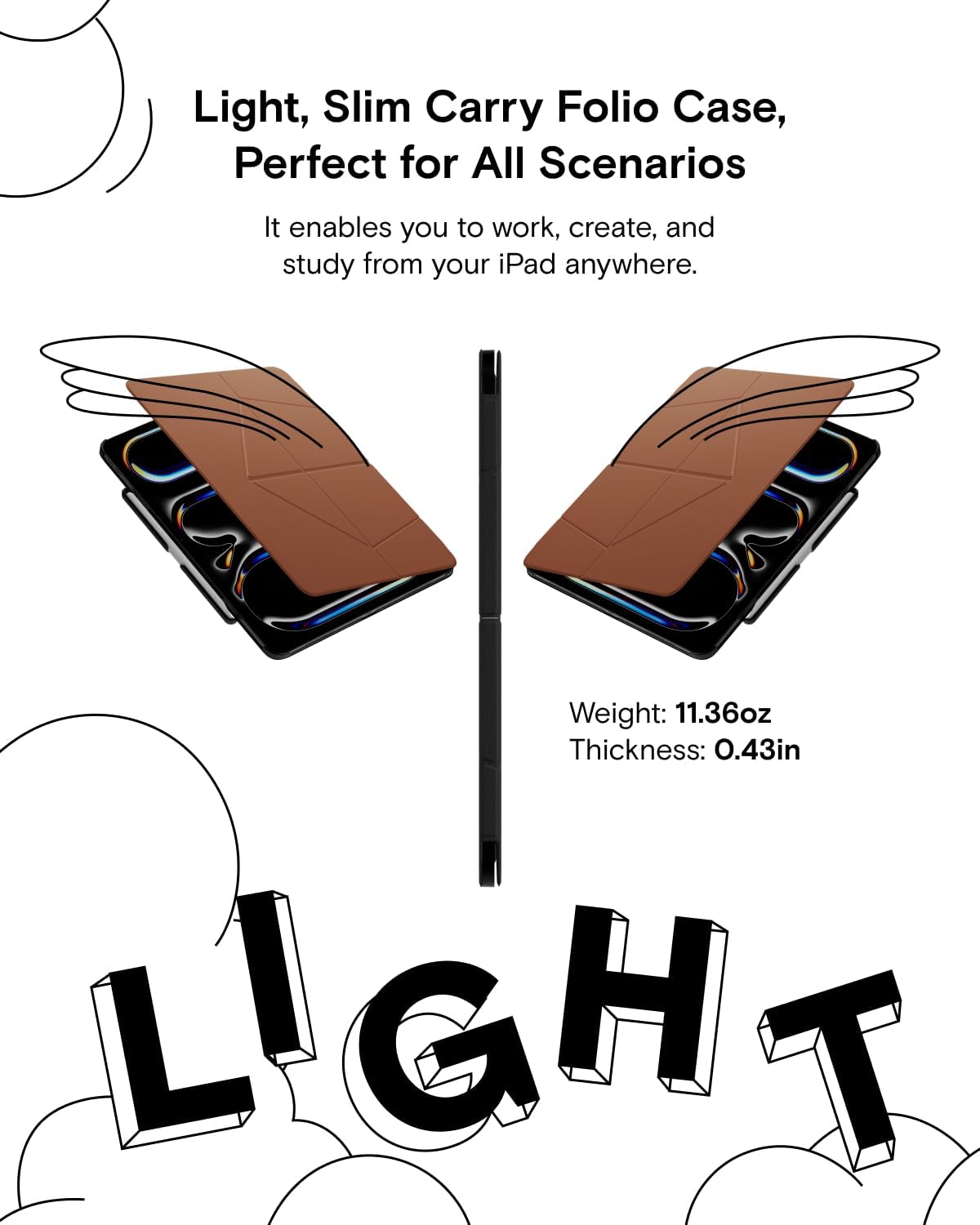 Easily switch between different angles — you can position the iPad upright or lower .. as shown in the pictures.