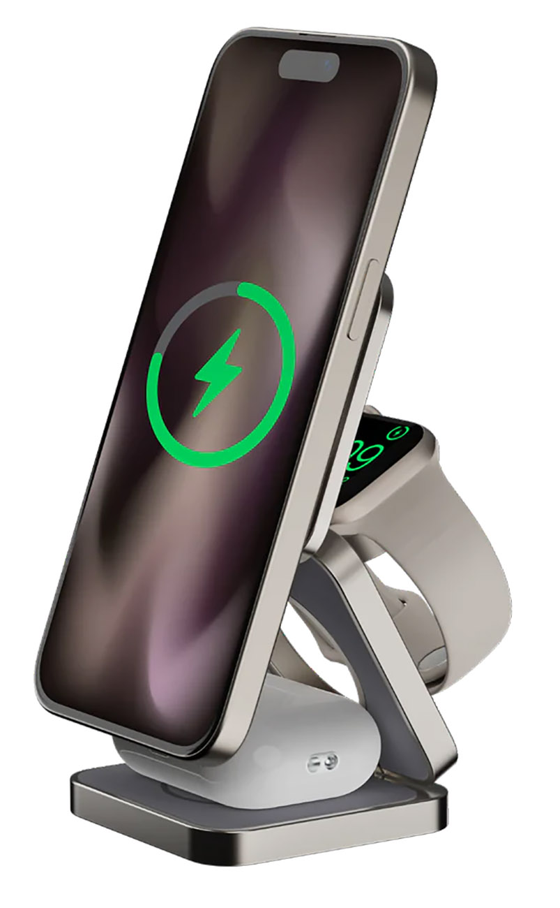 You can mount and charge your iPhone .. Apple Watch .. and AirPods all at once.