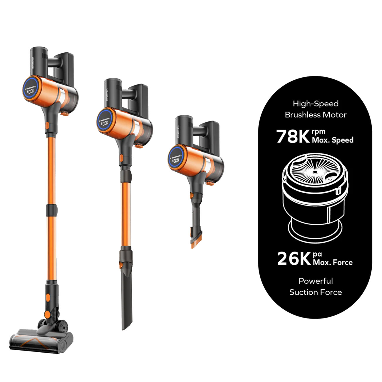 Provides powerful cleaning with a speed of 78,000 RPM and 26KPa suction power.