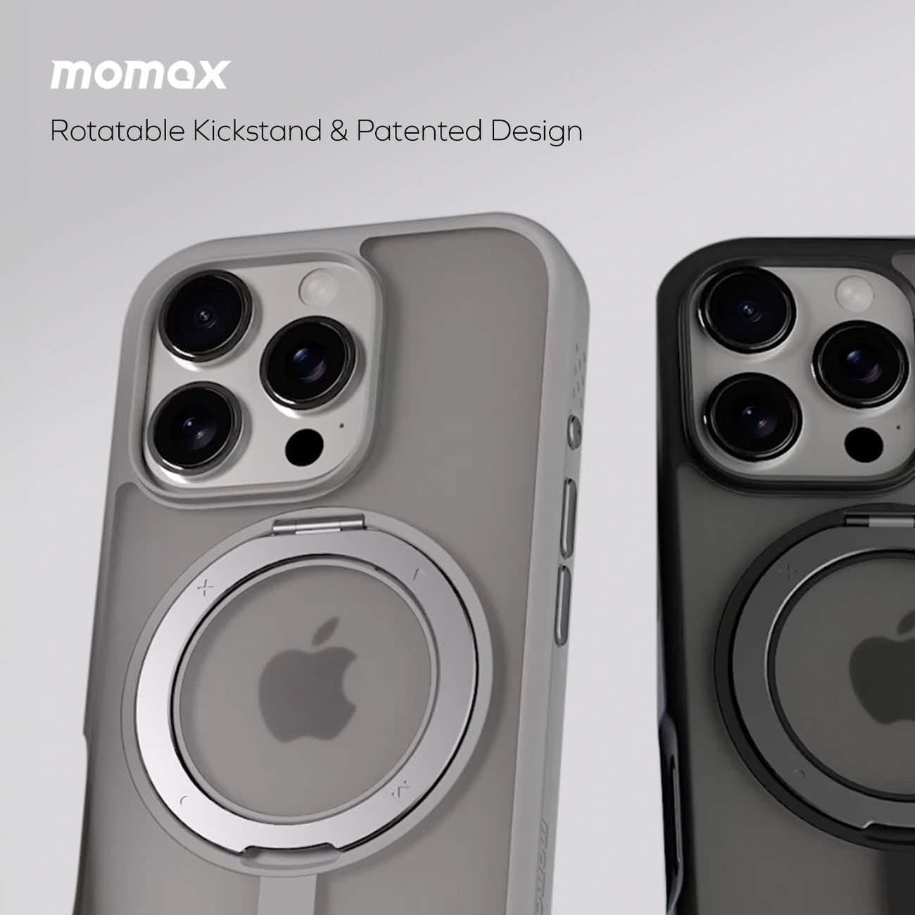 Momax Roller Case for iPhone 16 Pro Max / Built-in Stand & Grip / MagSafe / Drop Resistant / Grey in Qatar