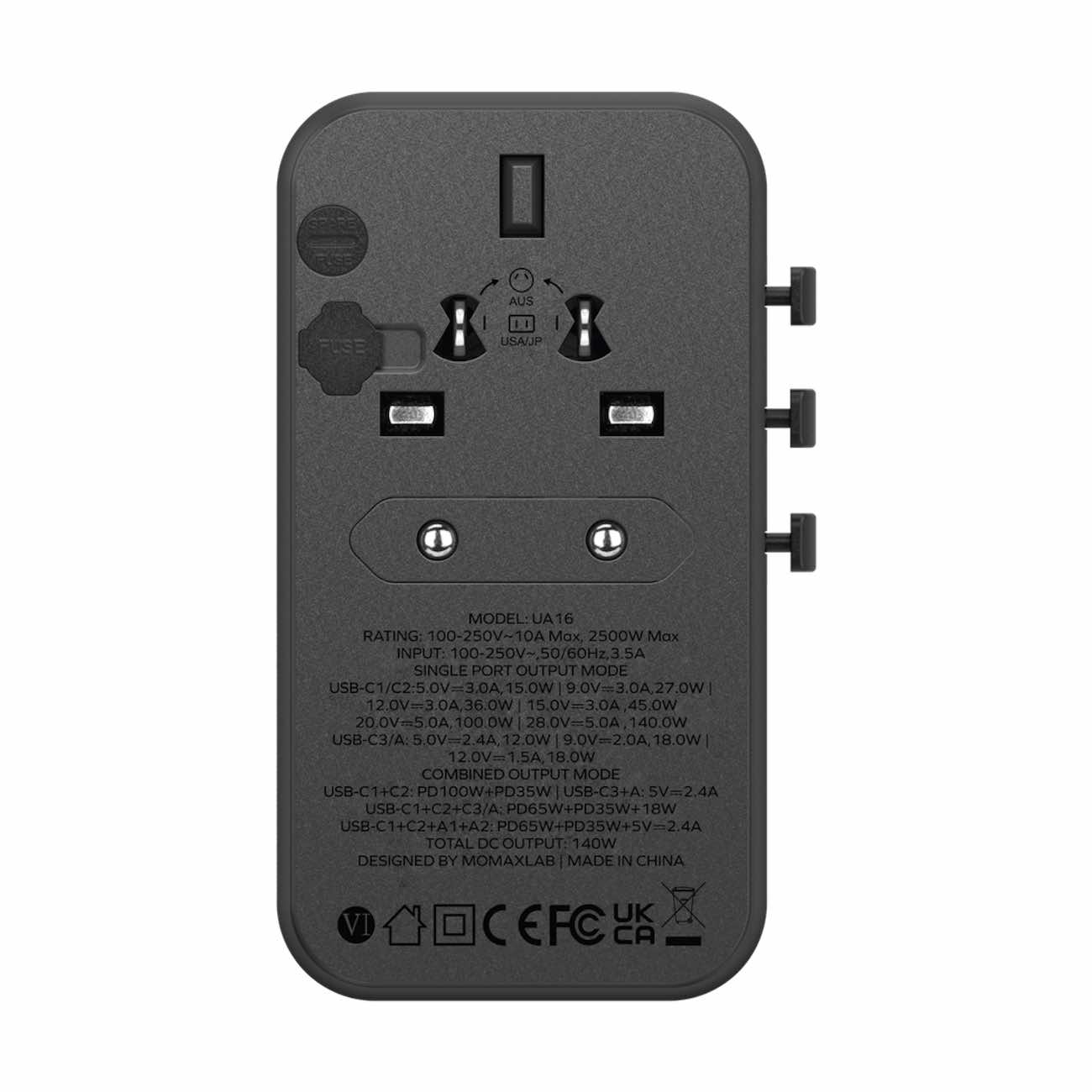 Provides 3 Type-C ports .. 1 USB port .. and 3 AC power socket.