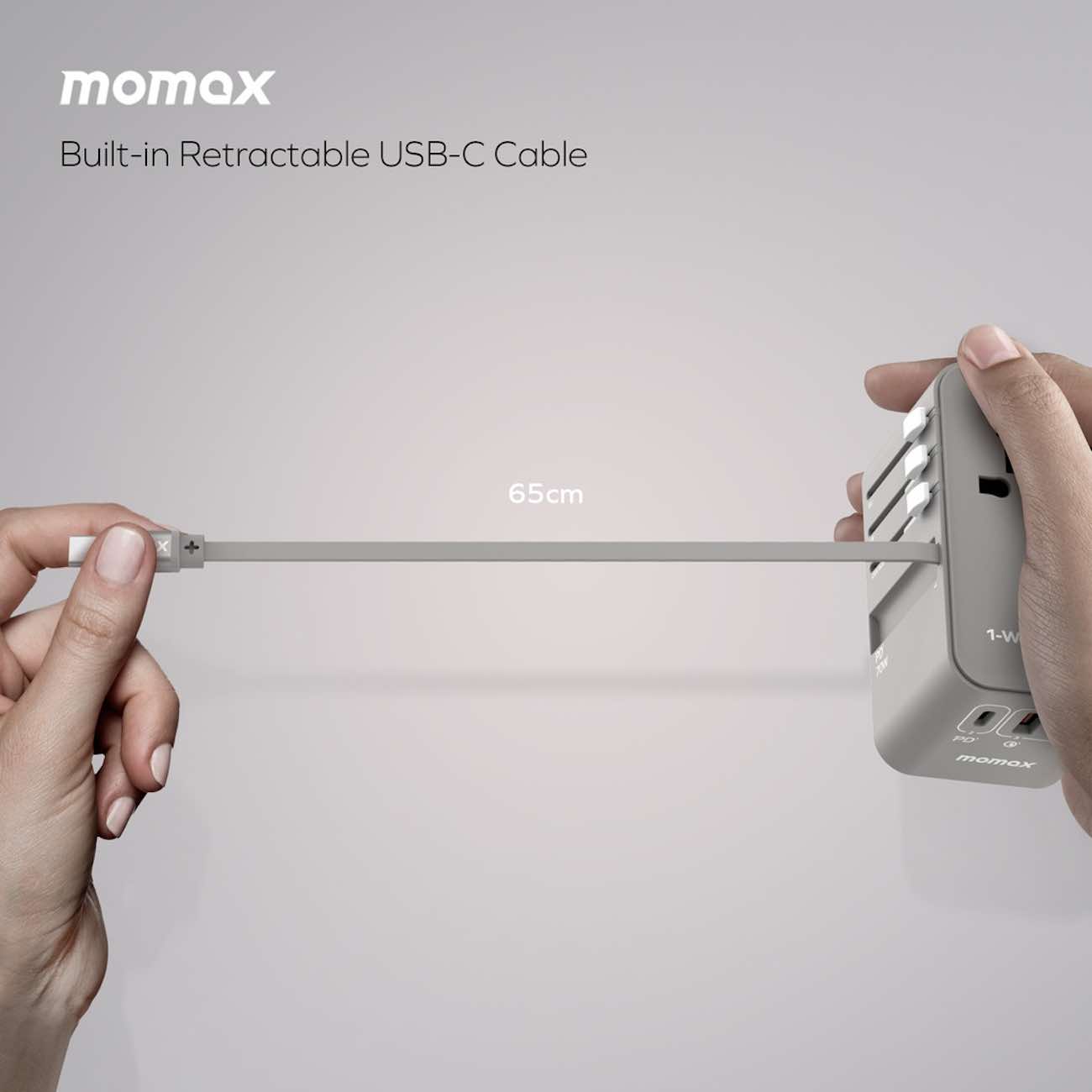 Provides 2 Type-C .. 2 USB .. 3 AC power ports .. and a built-in Type-C cable.