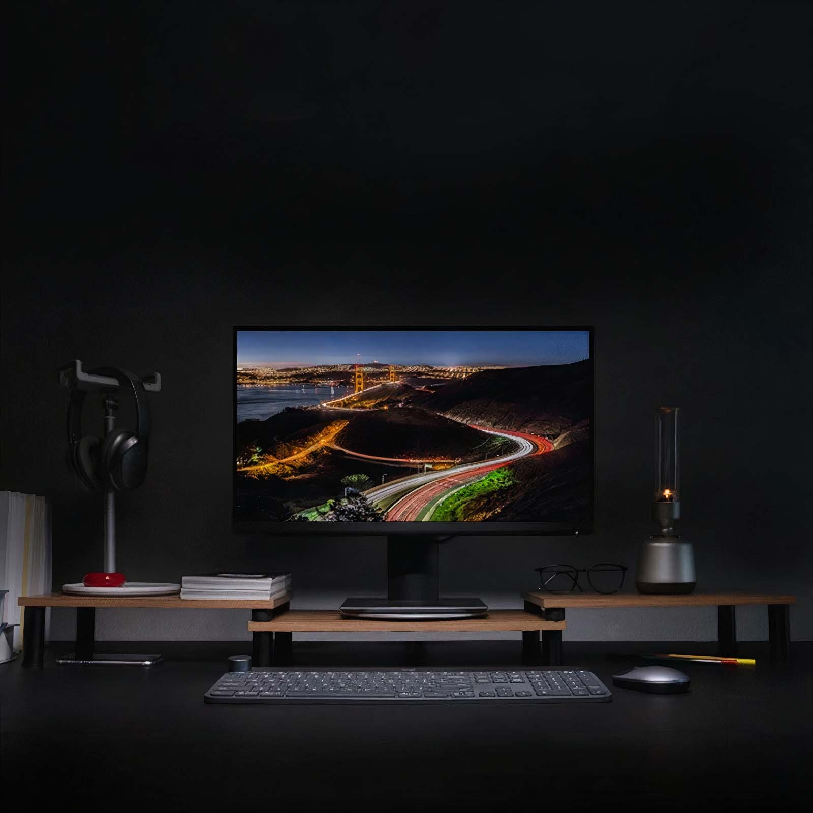 A stylish desktop stand for elevating your computer monitor.