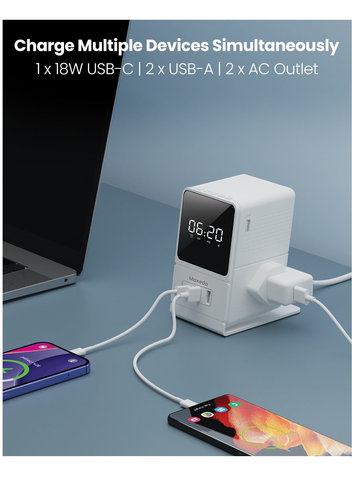 Provides you with 2 universal outlets, a USB Type-C port, and 2 USB-A ports.