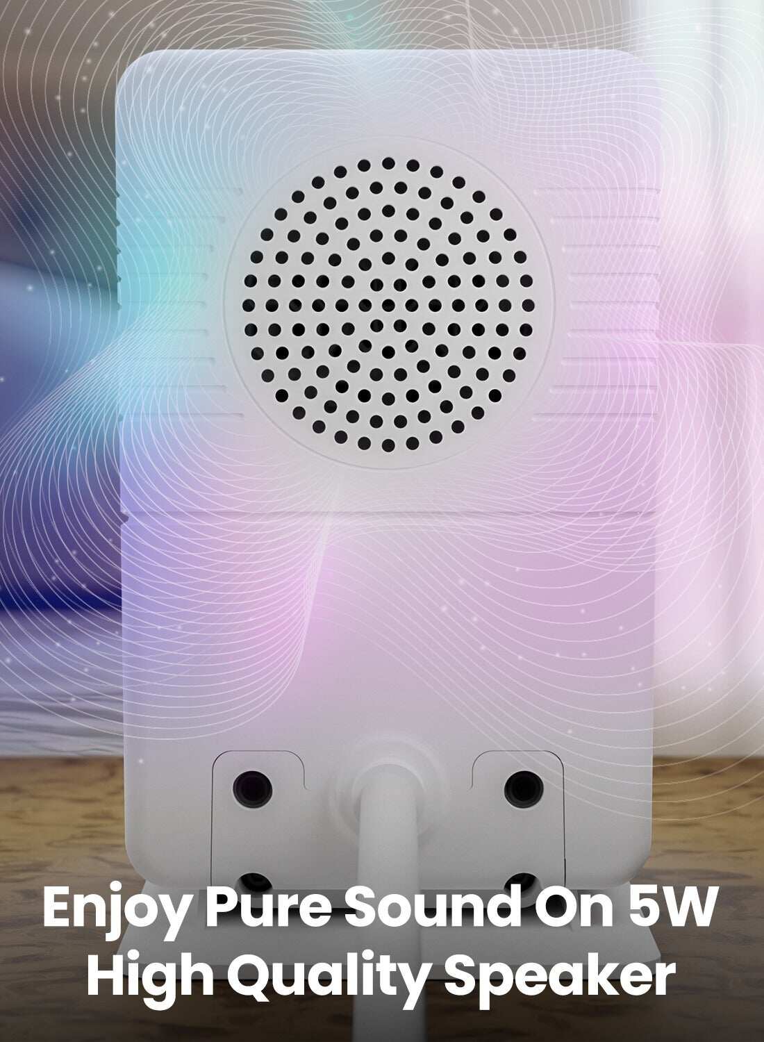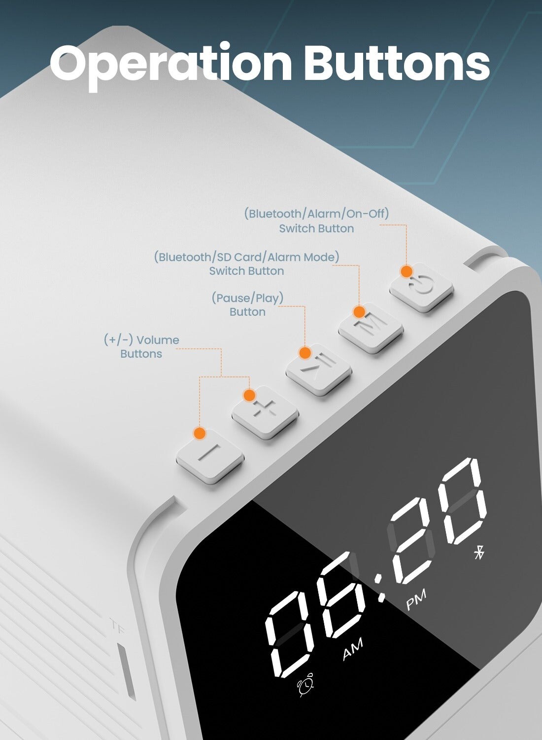 On the top of the adapter, you will find buttons for power, settings, time adjustment, volume control, song switching, and screen brightness.