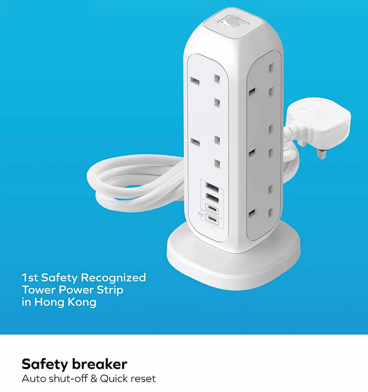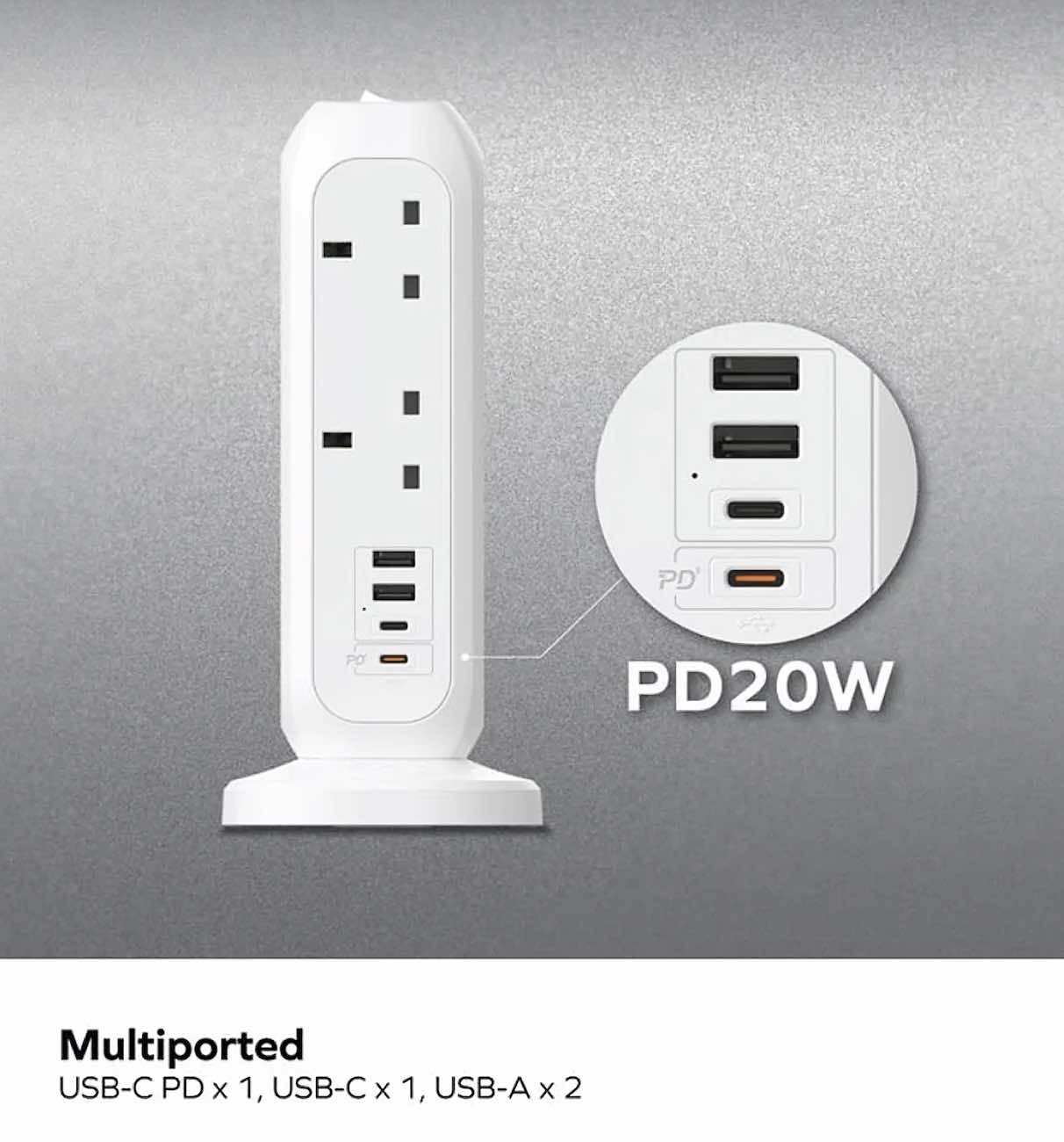 Provides 11 AC power sockets .. 2 Type-C .. 2 USB ports.