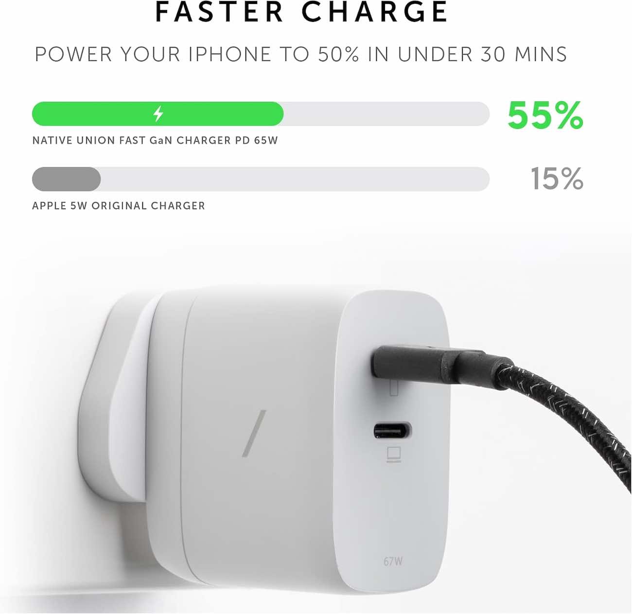Charges your phone .. whether it's an iPhone or Android .. at the maximum charging speed supported by the device.