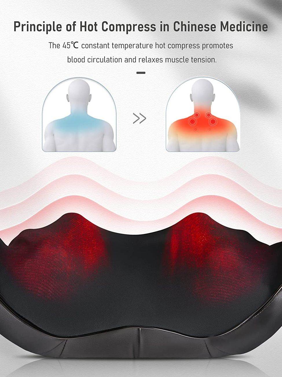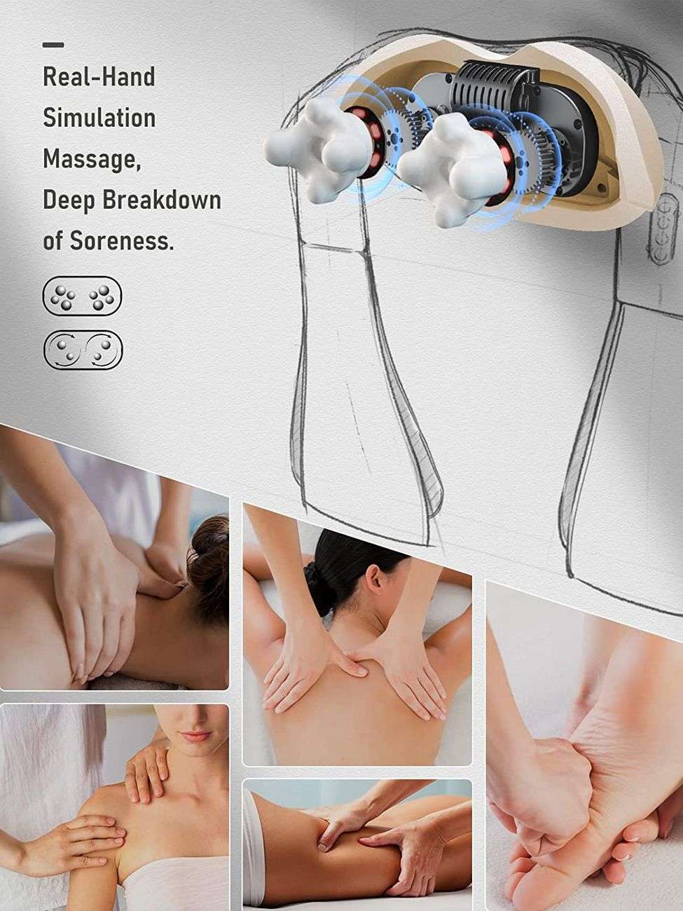 Multifunction: With finger pressure rotation and heating function, provide you with comfortable massage to soothe muscles and relieve tension. 3 speed is available for choice, built-in bidirectional motion control that can simulate hand kneading massage, which provide you with better massage effect distribution.