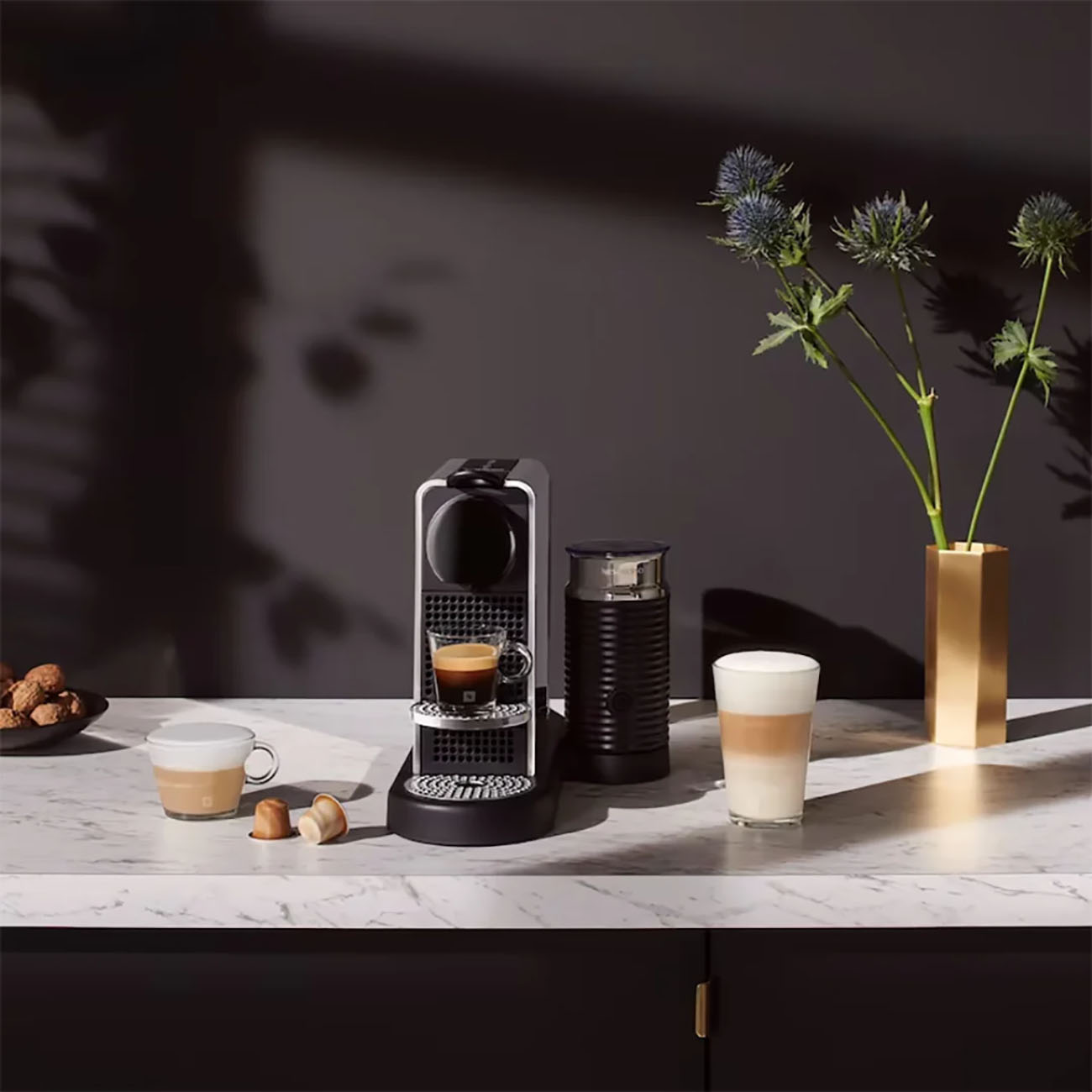 Includes a milk frother for quick and delicious milk foam – perfect for cappuccinos .. lattes .. and more.