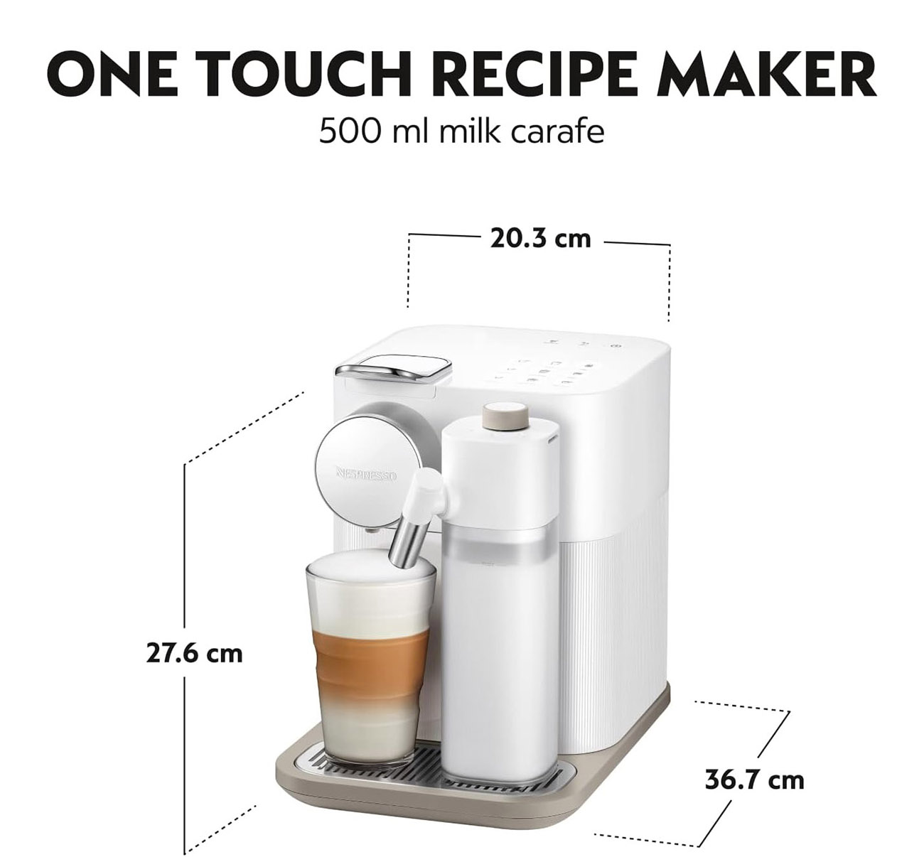 Milk tank capacity: 0.5 liters.