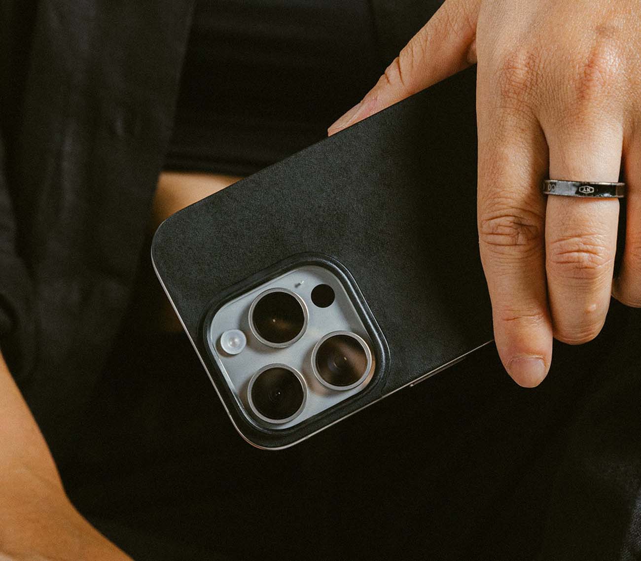 Nomad Leather Back for iPhone 16 Pro Max / Magnetic / Black Leather in Qatar