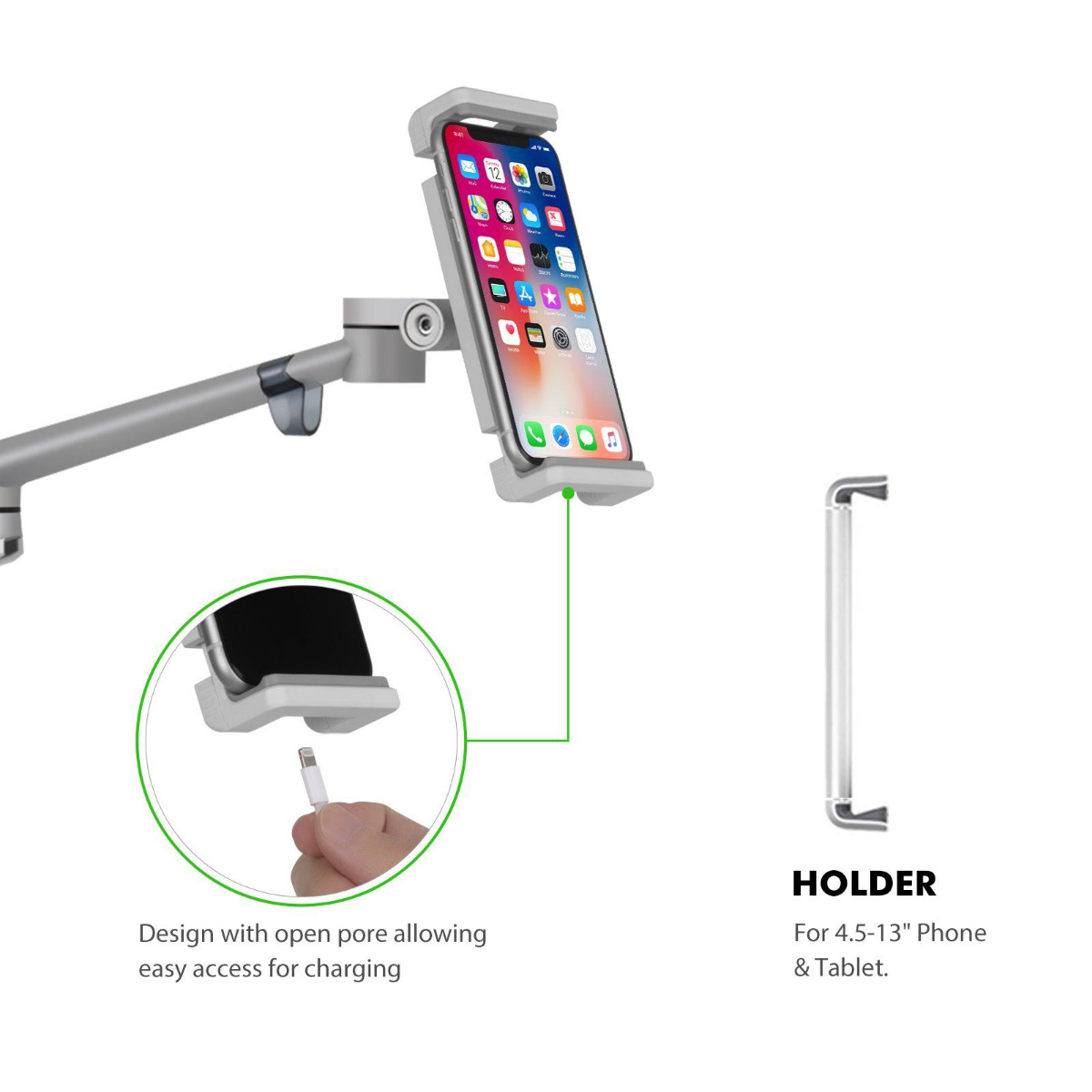 The arm of the stand contains silicone to protect the phone from scratches.