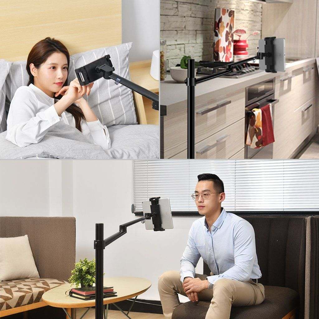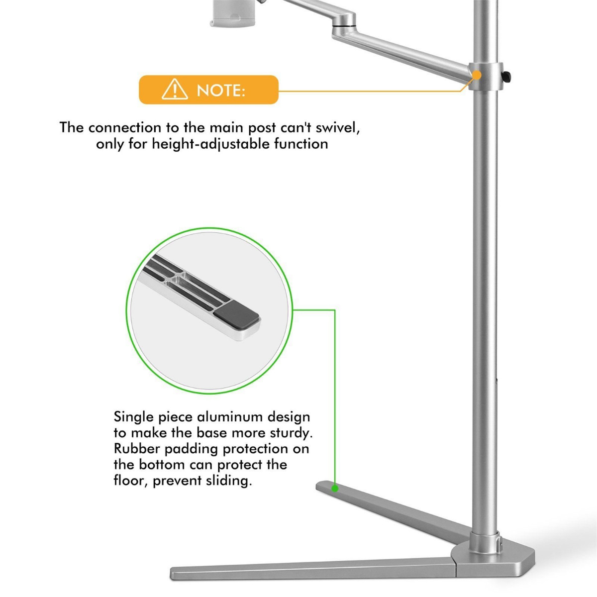 Floor stand made from strong aluminum that can handle phones and tablets.