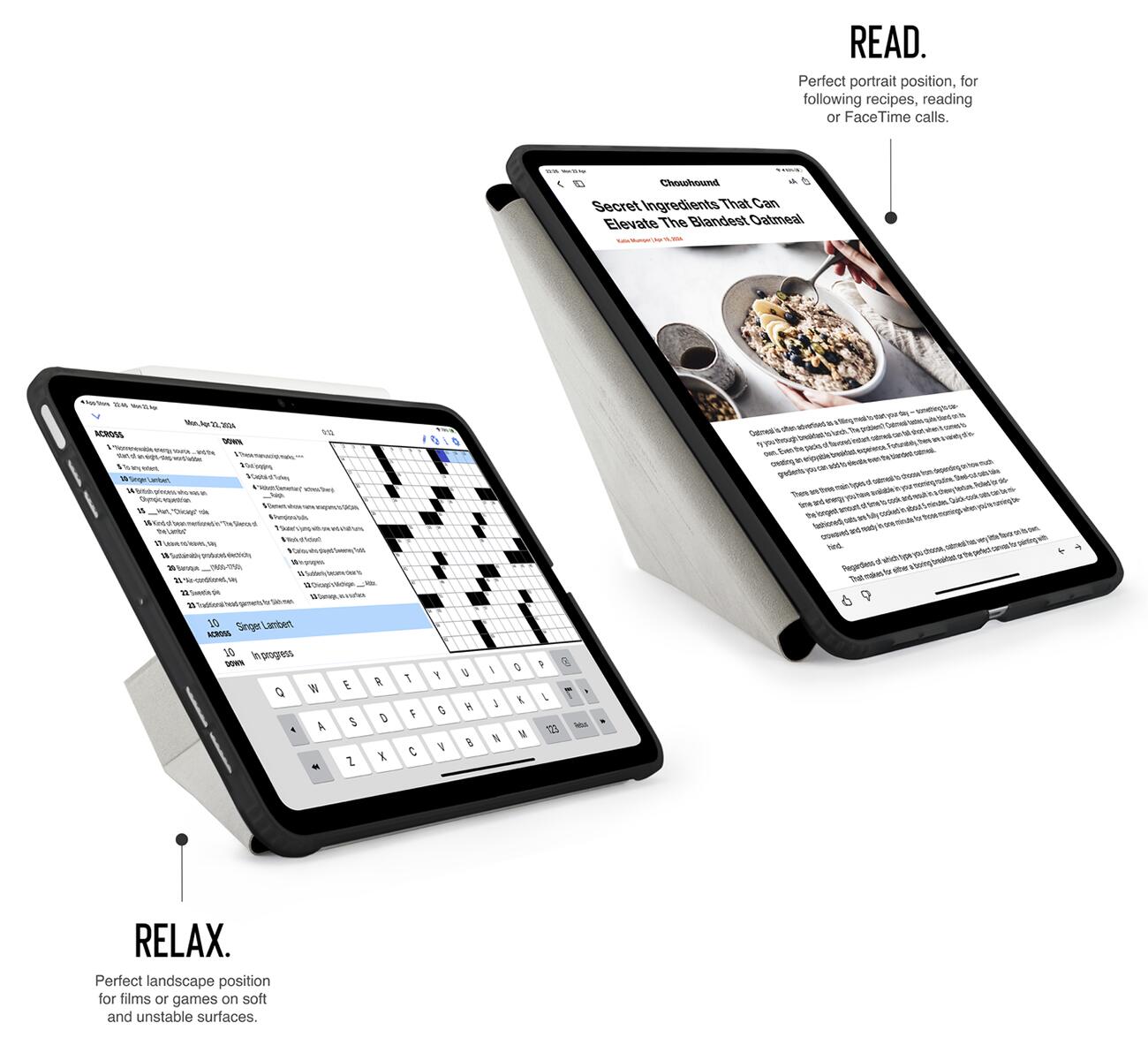 The front cover can be shaped to hold the iPad in portrait or landscape mode at multiple angles for your convenience.