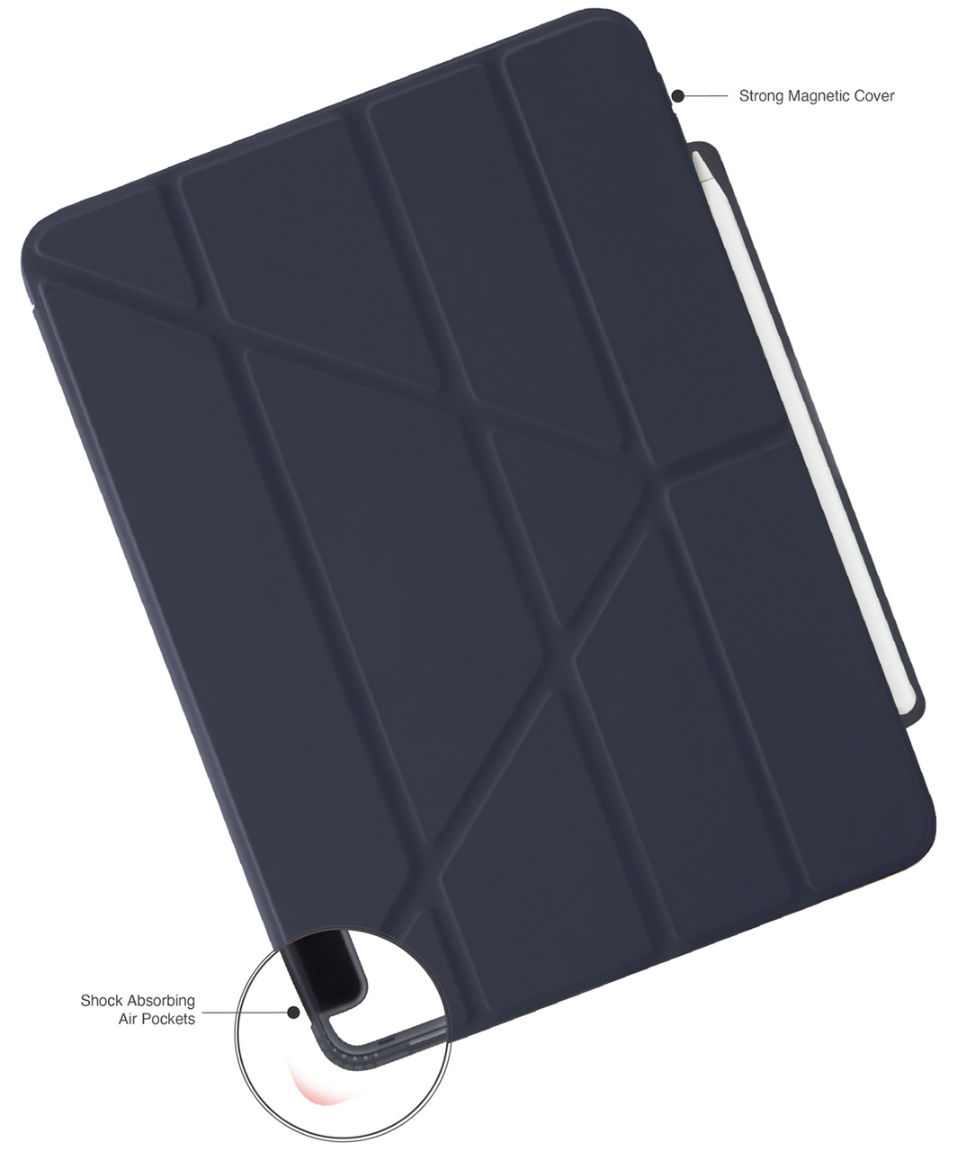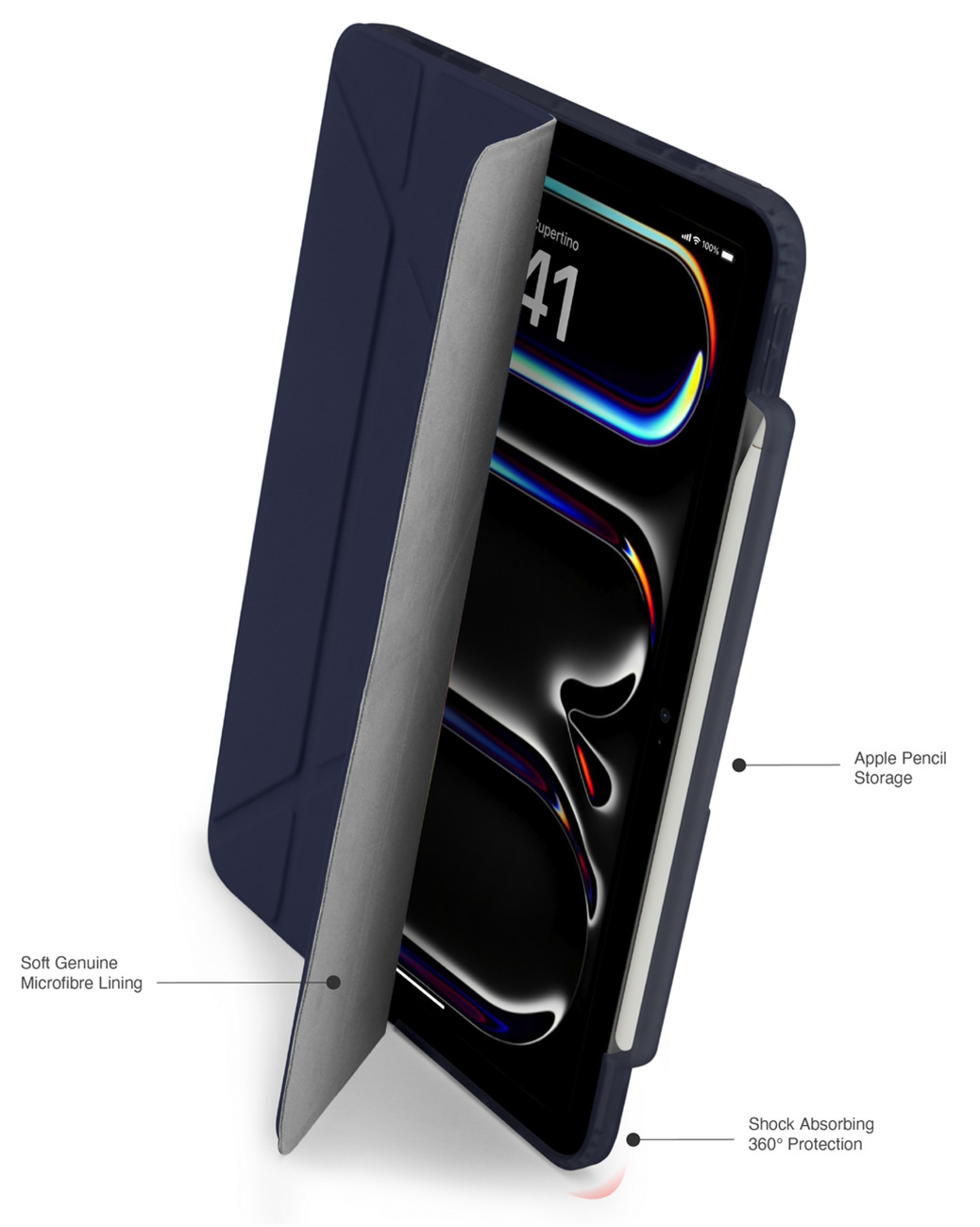 Includes a slot for storing the Apple Pencil .. preventing it from getting lost.