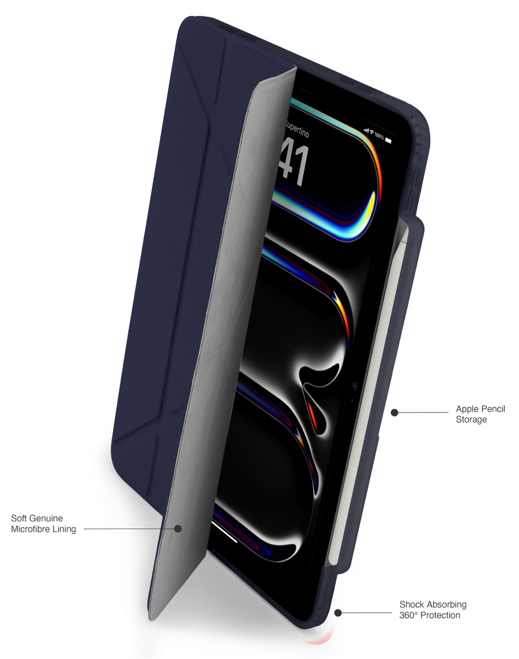 The front cover can be folded to position the iPad vertically or horizontally at multiple angles to suit your use.