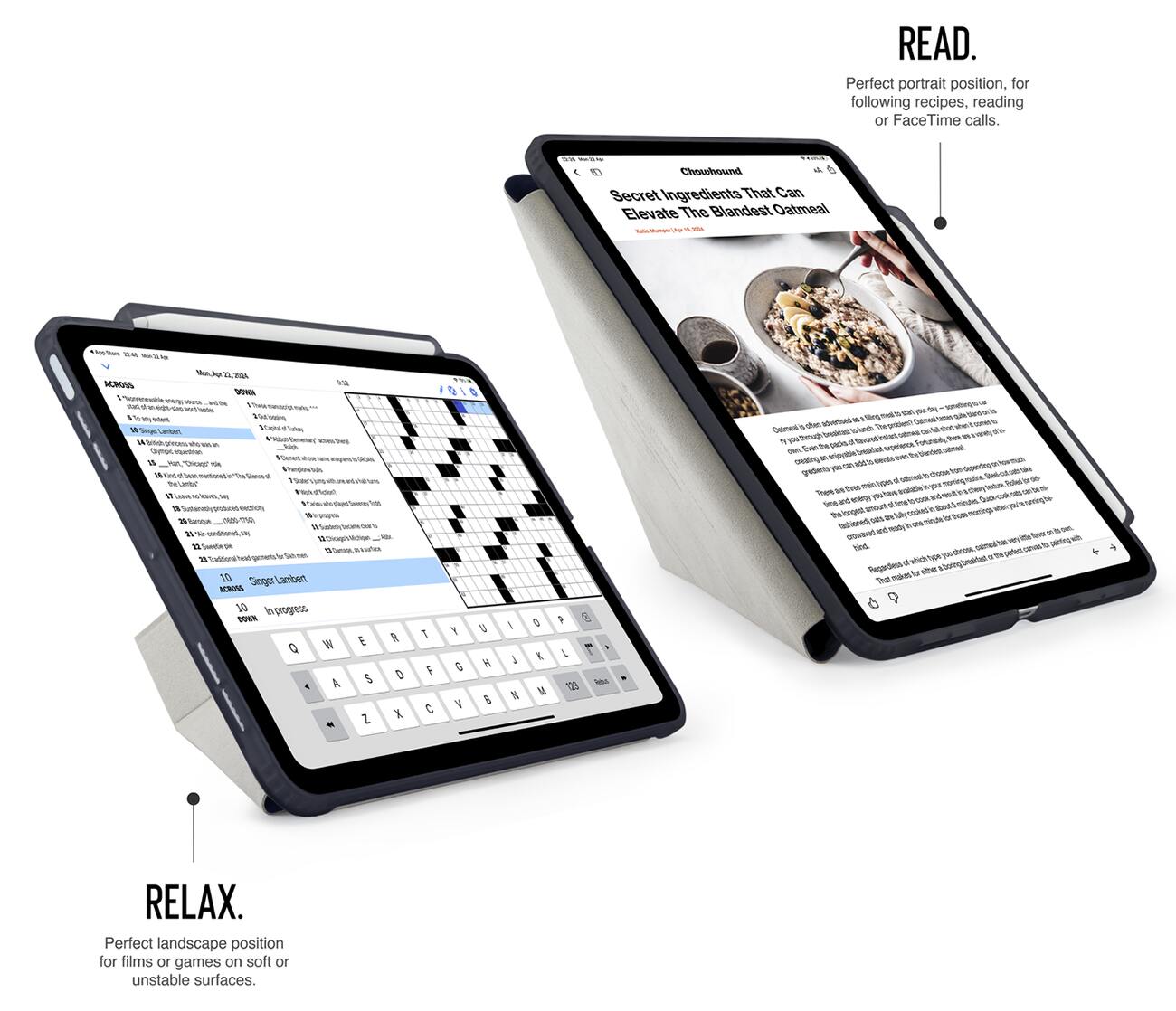 The front cover can be shaped to hold the iPad in portrait or landscape mode at multiple angles for your convenience.