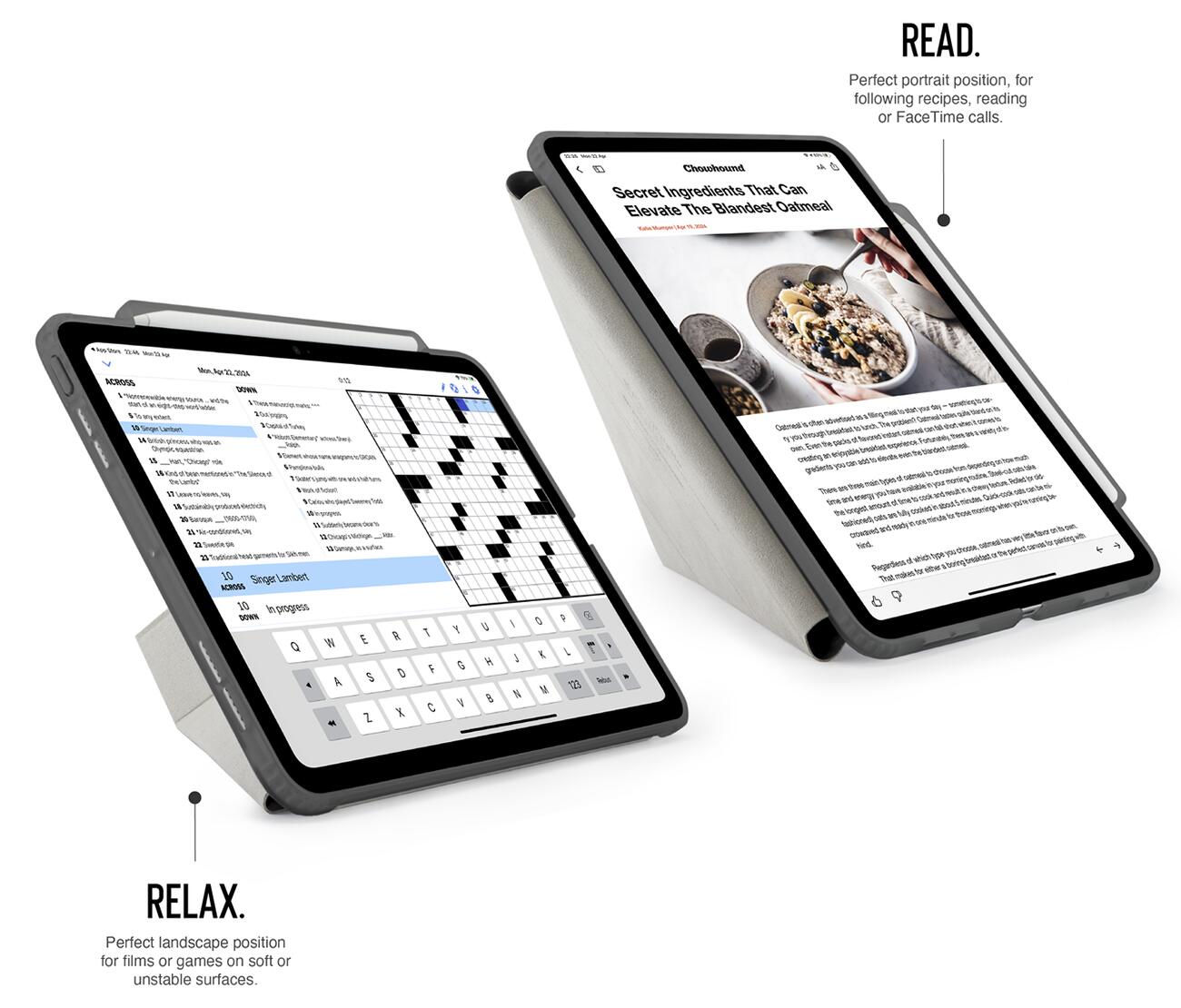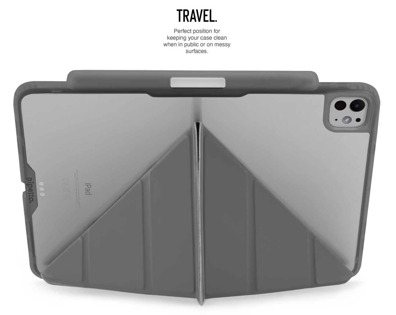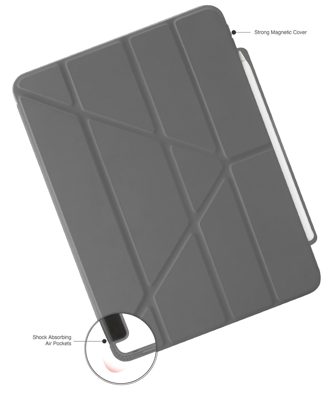 The front cover can be folded to position the iPad vertically or horizontally at multiple angles to suit your usage.