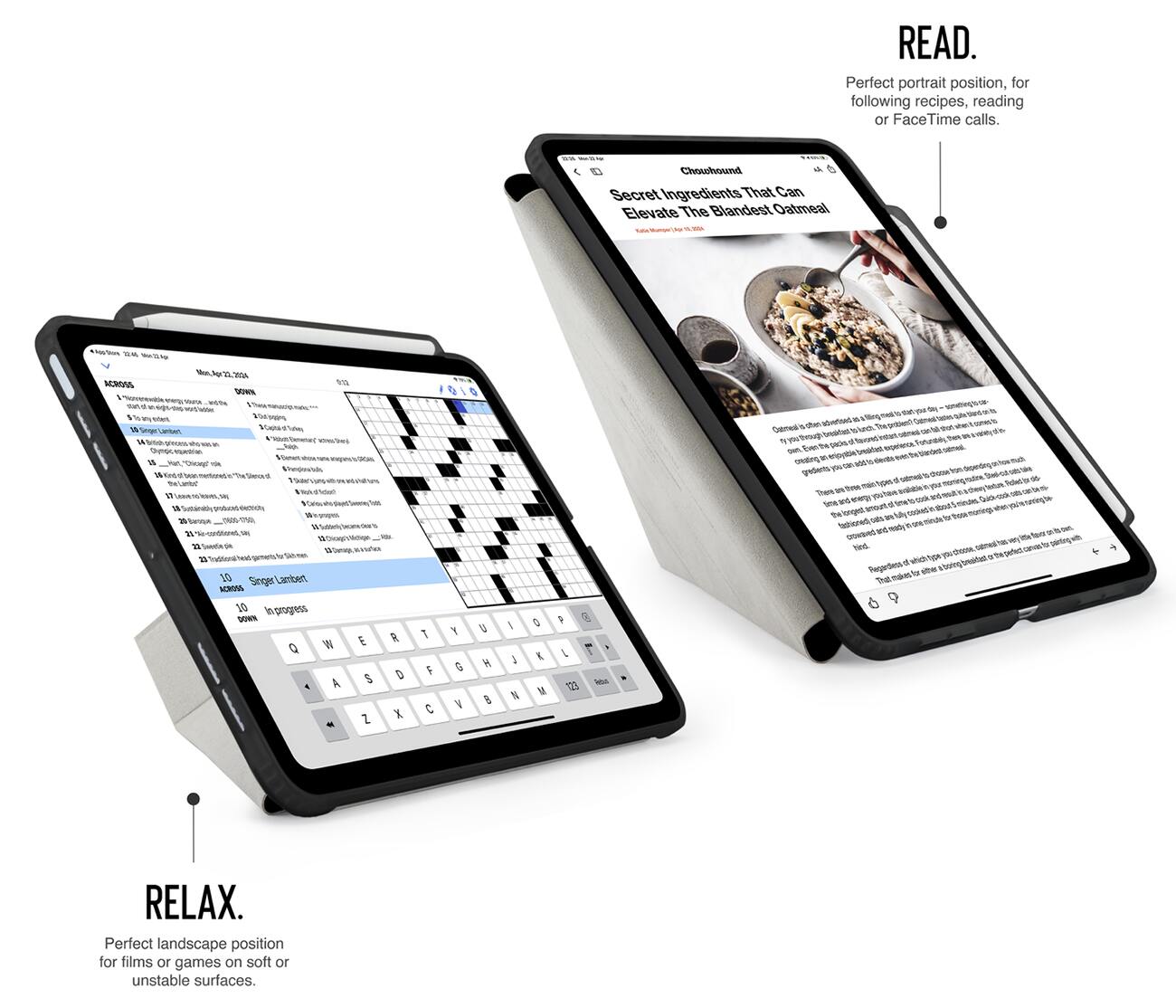 The front cover can be shaped to hold the iPad in portrait or landscape mode at multiple angles for your convenience.