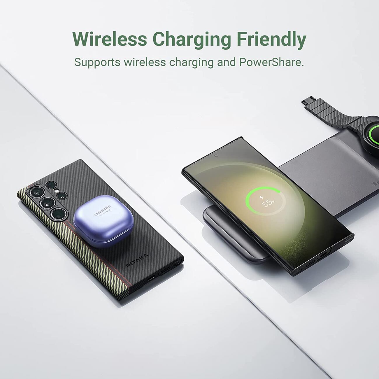 Built-in MagSafe Magnets: attaches to PITAKA MagSafe wireless charger for seamless charging. Supports wireless charging and PowerShare.