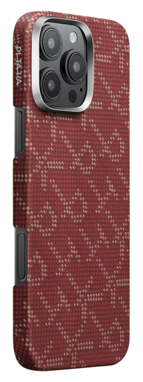 PITAKA Case for iPhone 16 Pro / Carbon Fiber / MagSafe / Slim & Lightweight / Red & Gold in Qatar