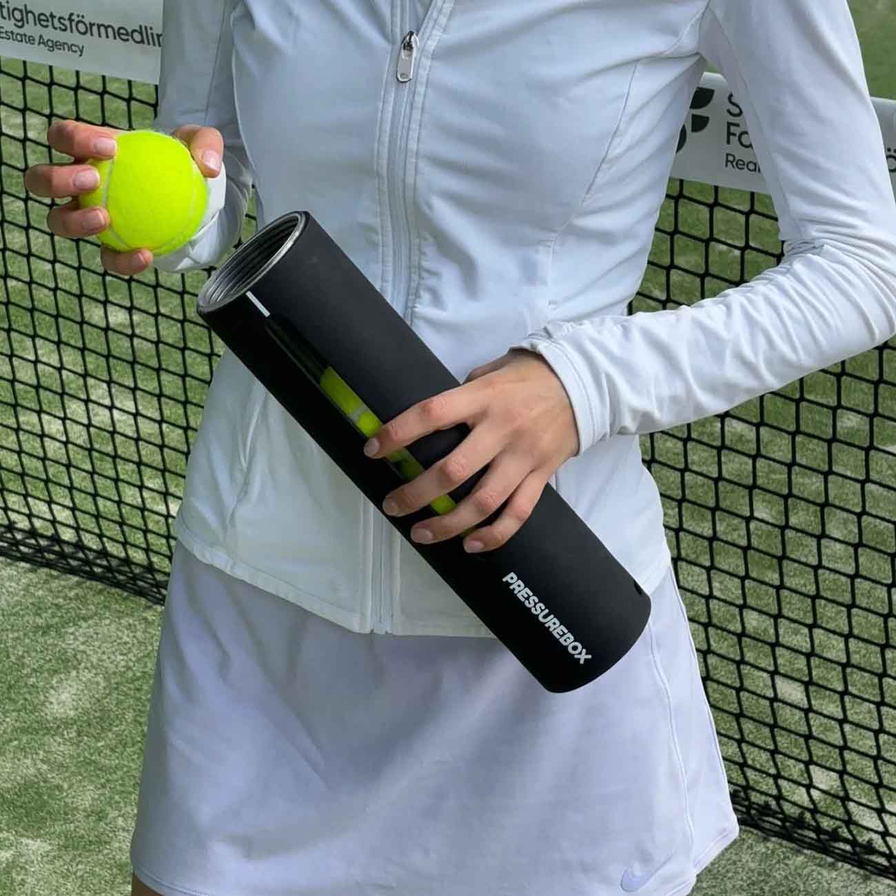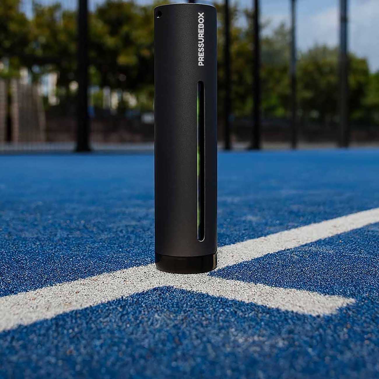 Automatically re-pressurizes padel balls inside a sealed container to keep bounce consistent.