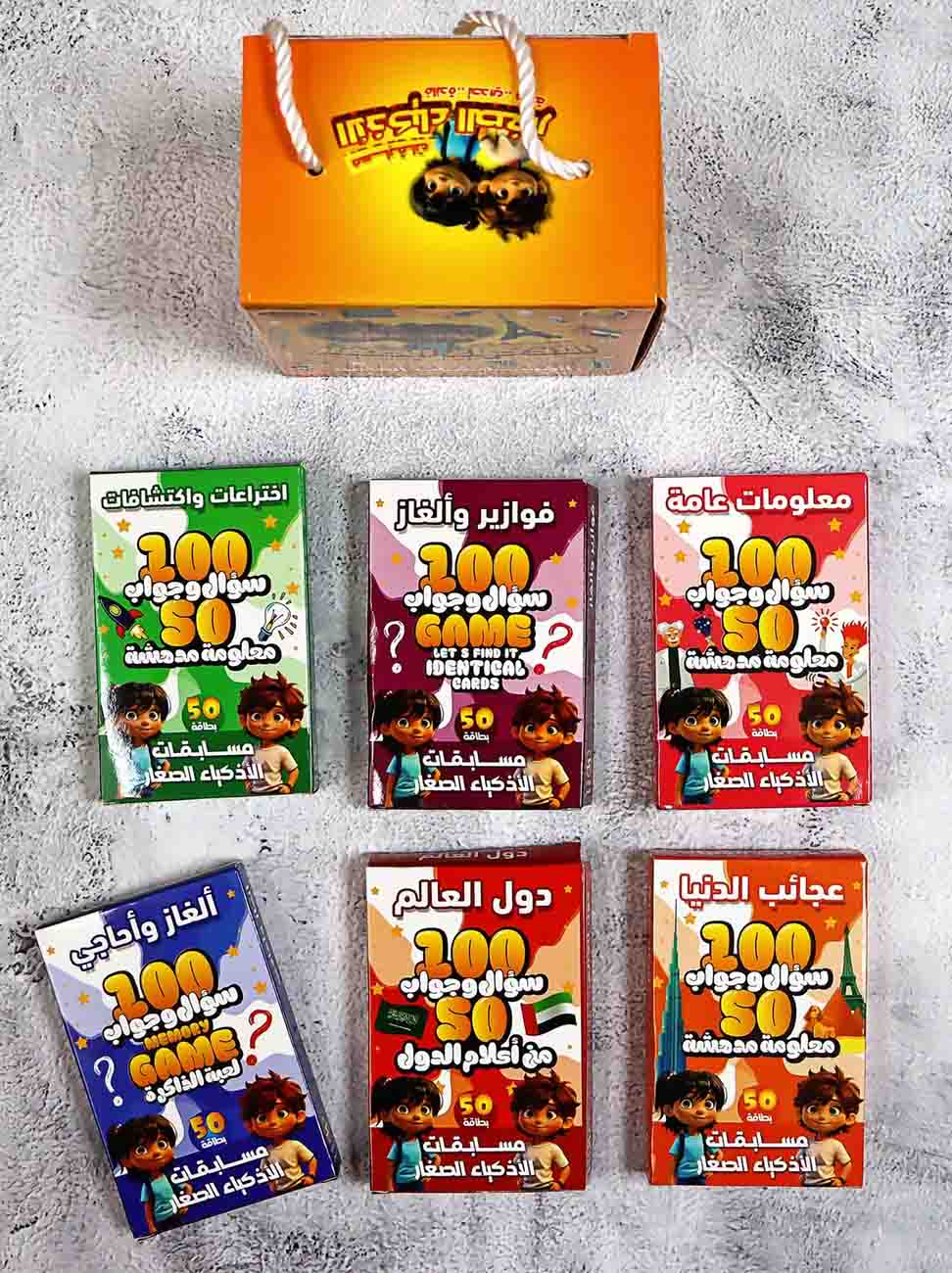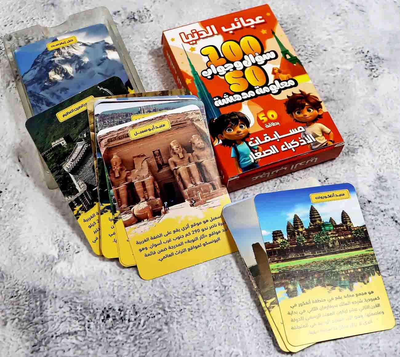 Each box contains 50 cards, with a question and answer on one side and an image with simplified information on the other.