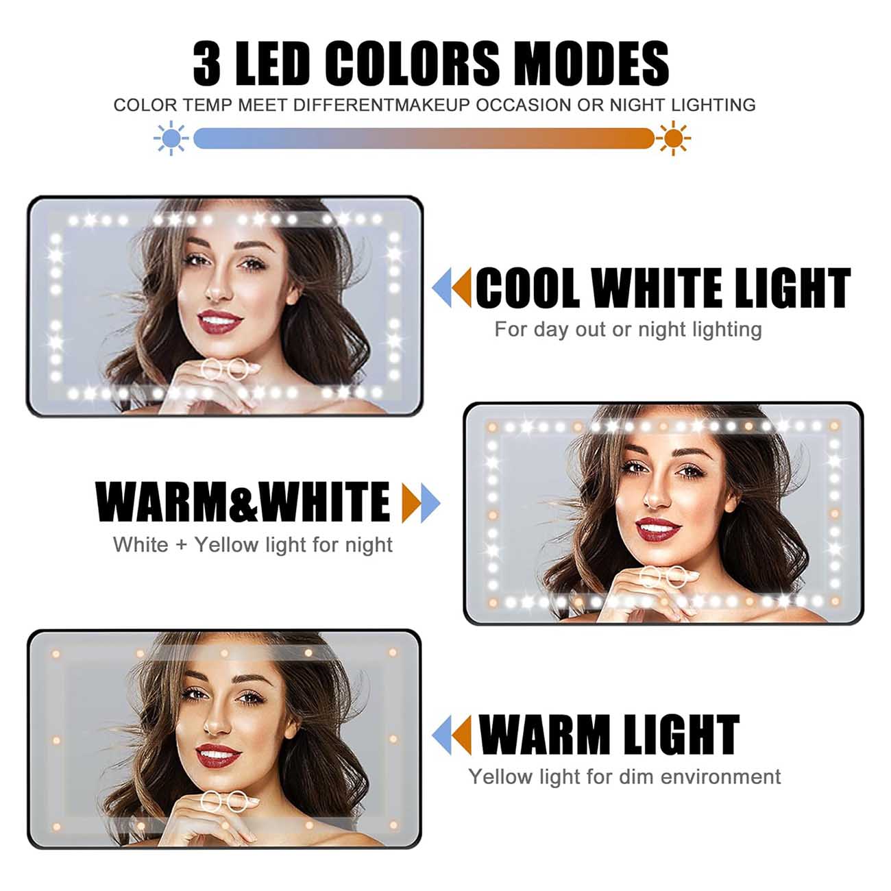 Adjustable lighting modes: Cool White .. Warm White .. and Natural — to suit your needs.