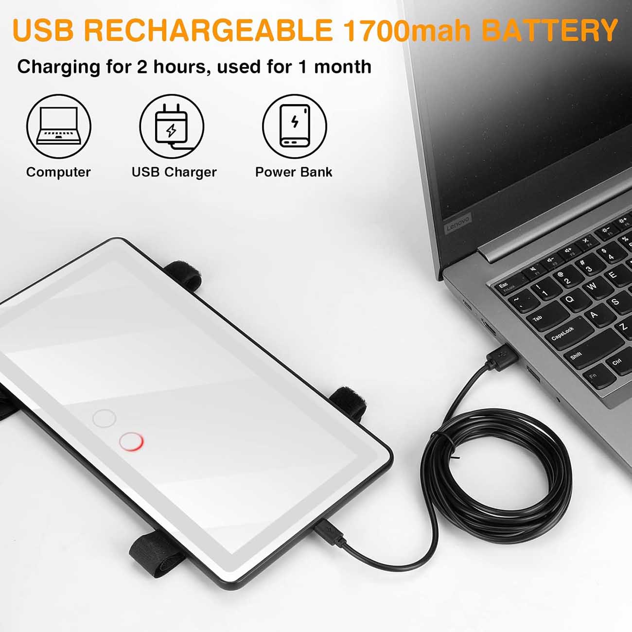 Powered by a rechargeable battery via a Type-C port.
