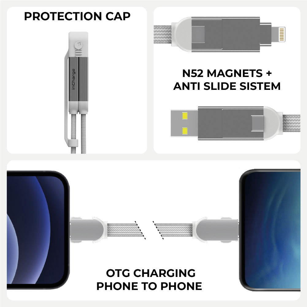 Rolling Square inCharge XL 6 in 1 Charging Cable / 30 Cm / 100W / White in Qatar
