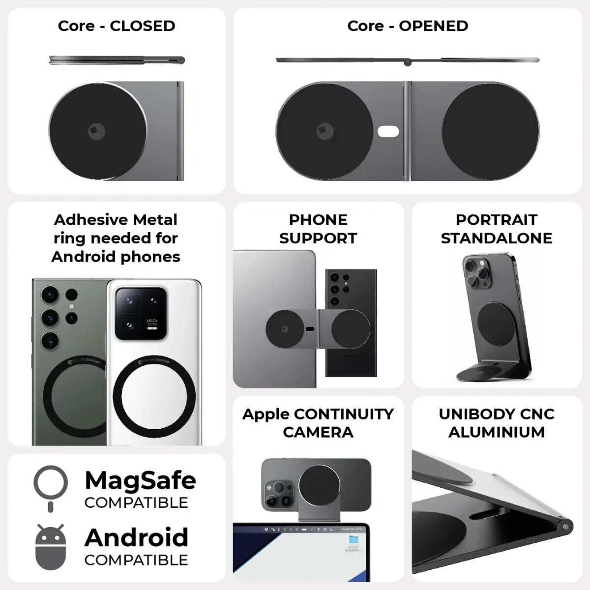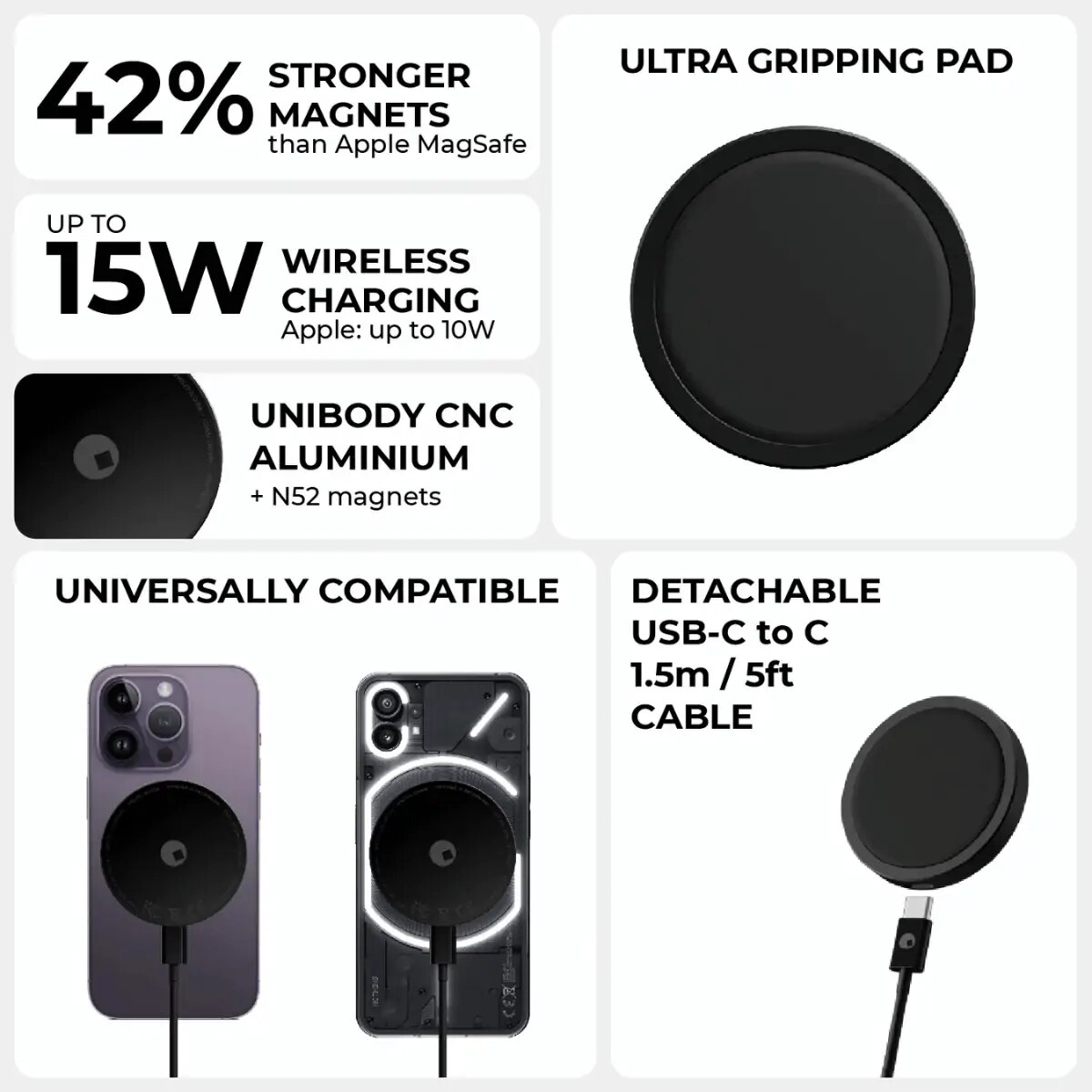 Supports MagSafe and is compatible with Android phones, older iPhone models, iPads, and tablets.