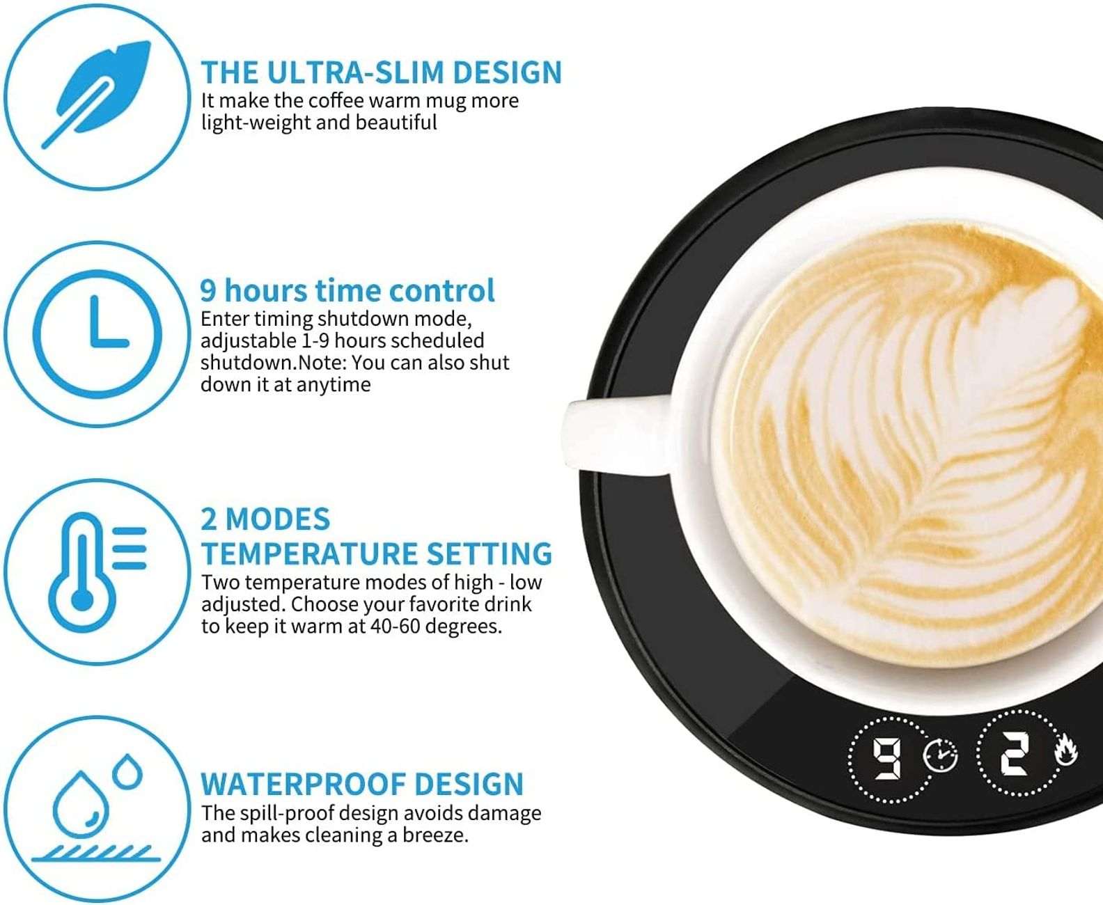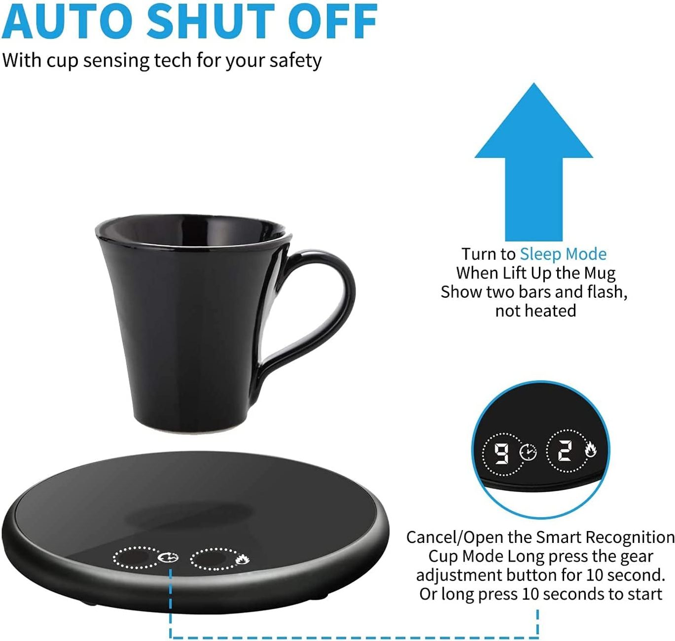 Note: The surface gets very hot when in use – avoid touching it directly.