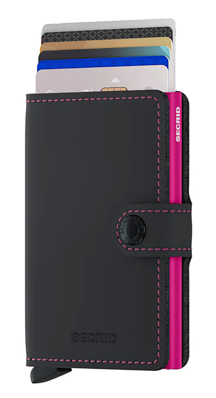 Secrid Miniwallet Card Holder / RFID Protection / Matte Leather / Black & Fuchsia in Qatar
