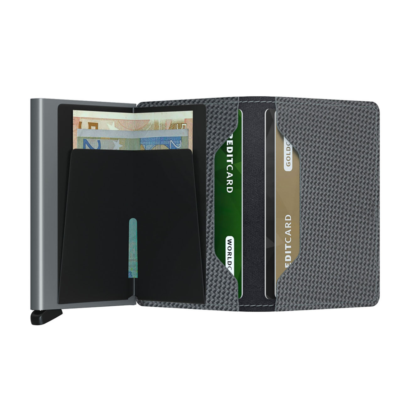 Includes a Cardprotector made of strong aluminum.