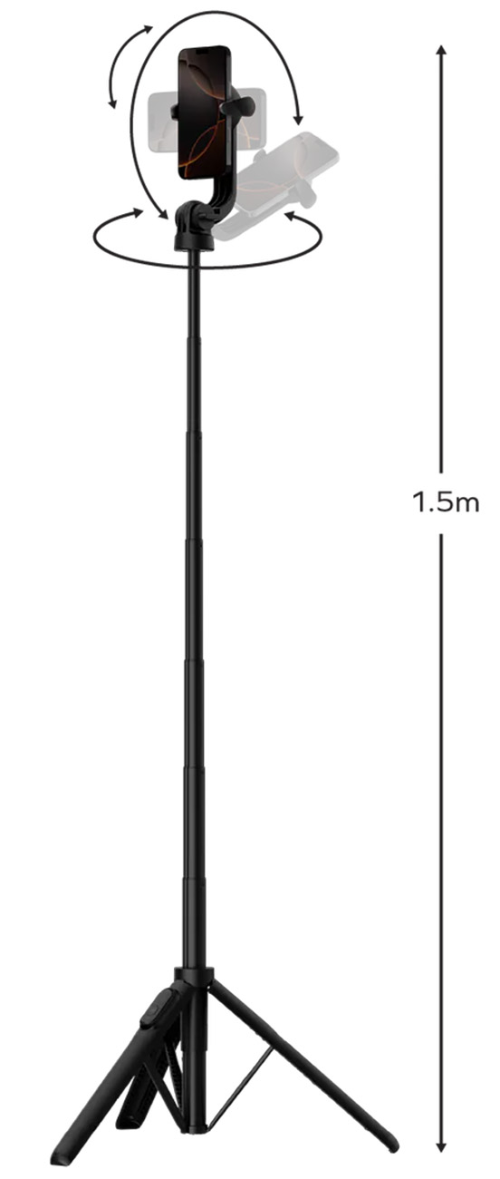 Extendable up to 1.5 meters for wider shooting angles.