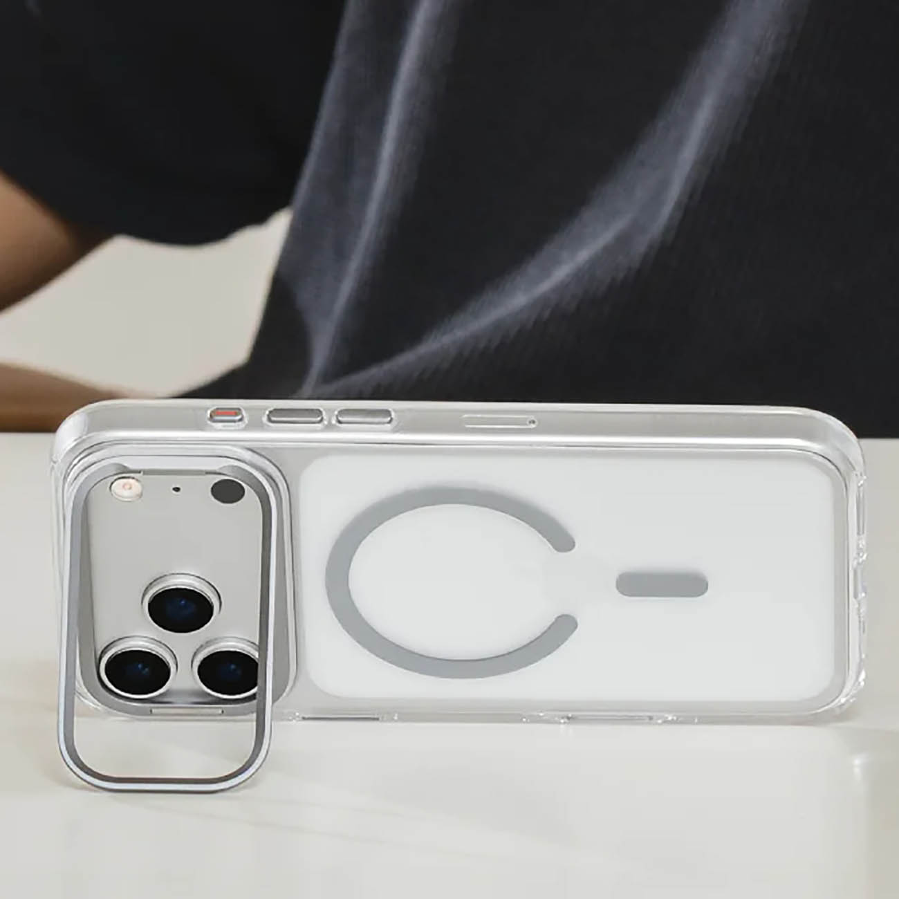 SwitchEasy Case for iPhone 17 Pro / Built-in Stand / MagSafe / Drop-Resistant / Clear & Grey in Qatar