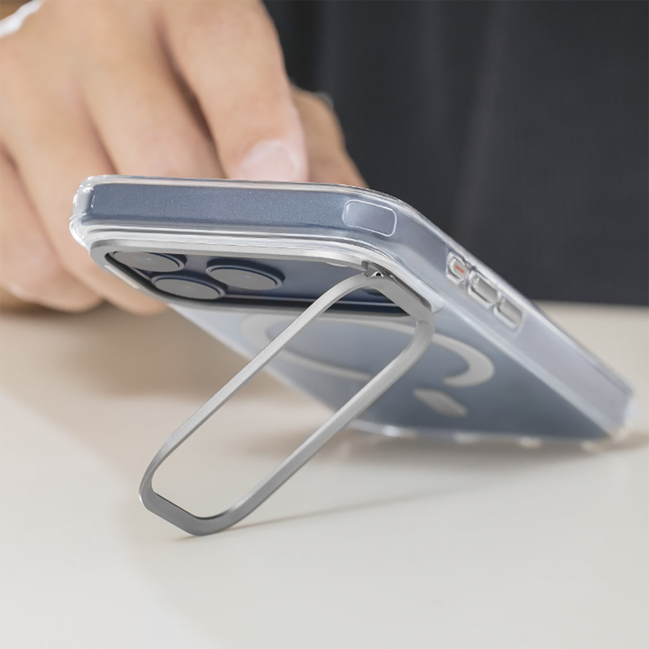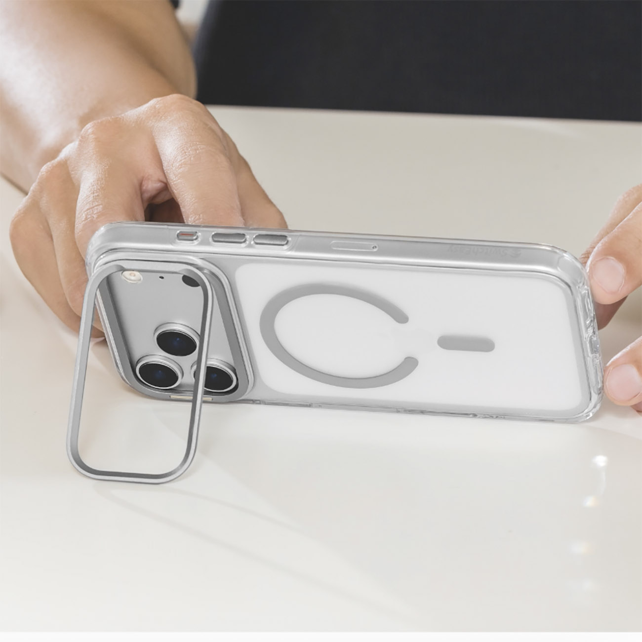 SwitchEasy Case for iPhone 17 Pro Max / Built-in Stand / MagSafe / Drop-Resistant / Clear & Grey in Qatar