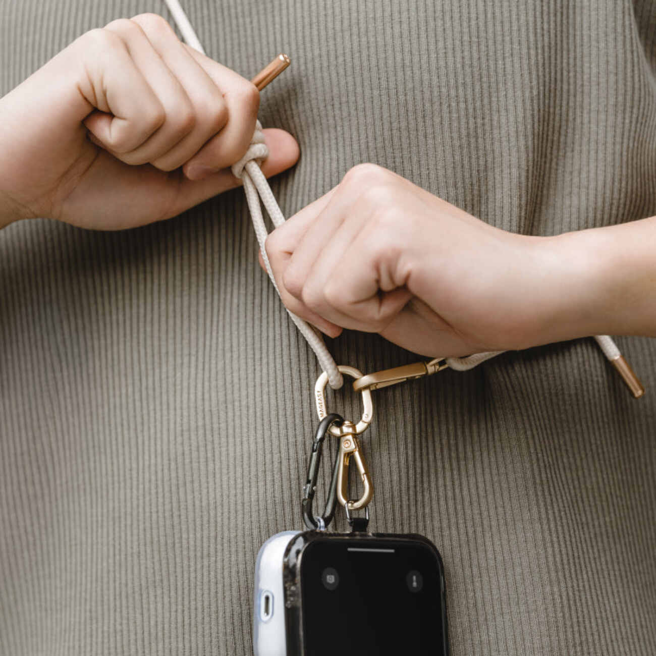 Now, you can secure the phone with the attached strap.