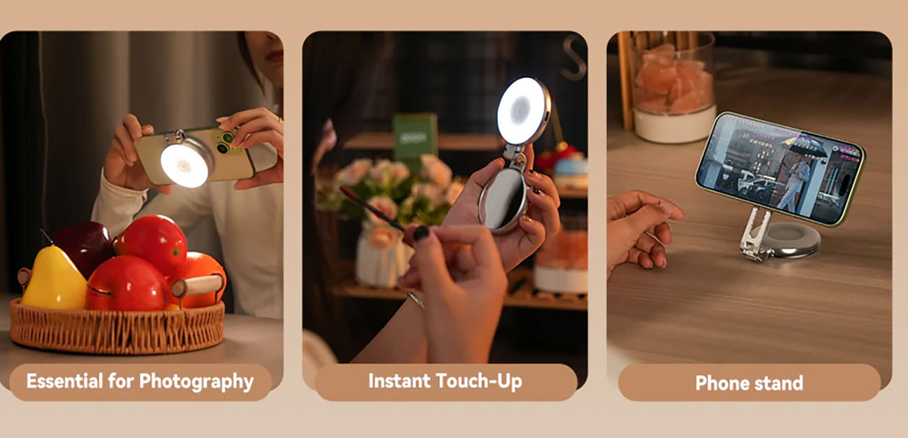 Can be used as a phone stand — supports both portrait and landscape orientations.
