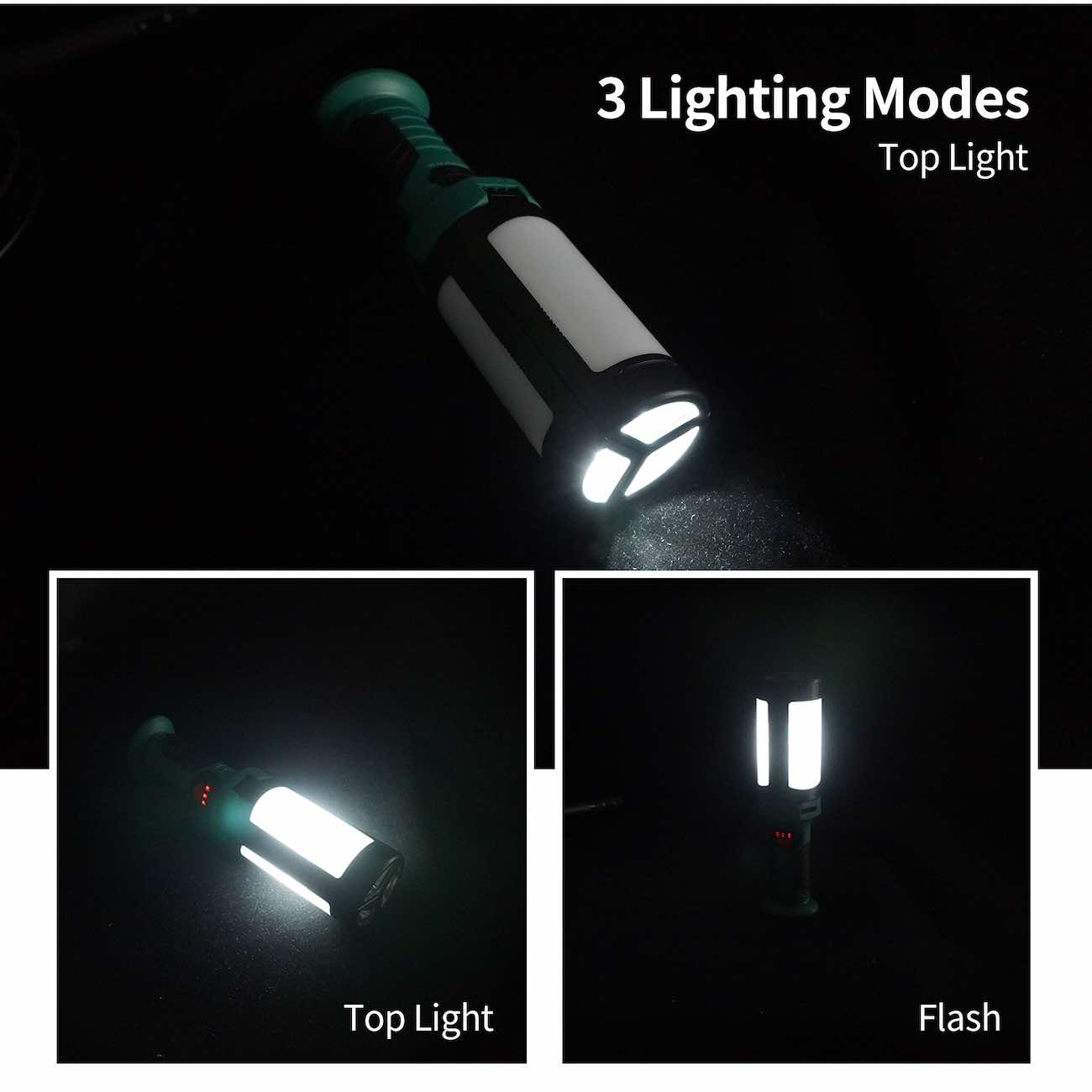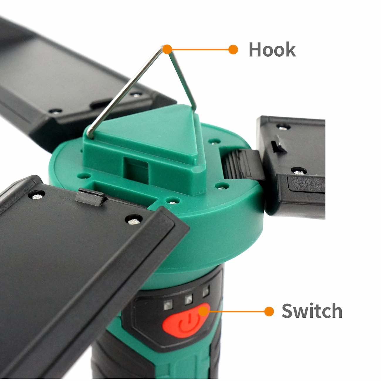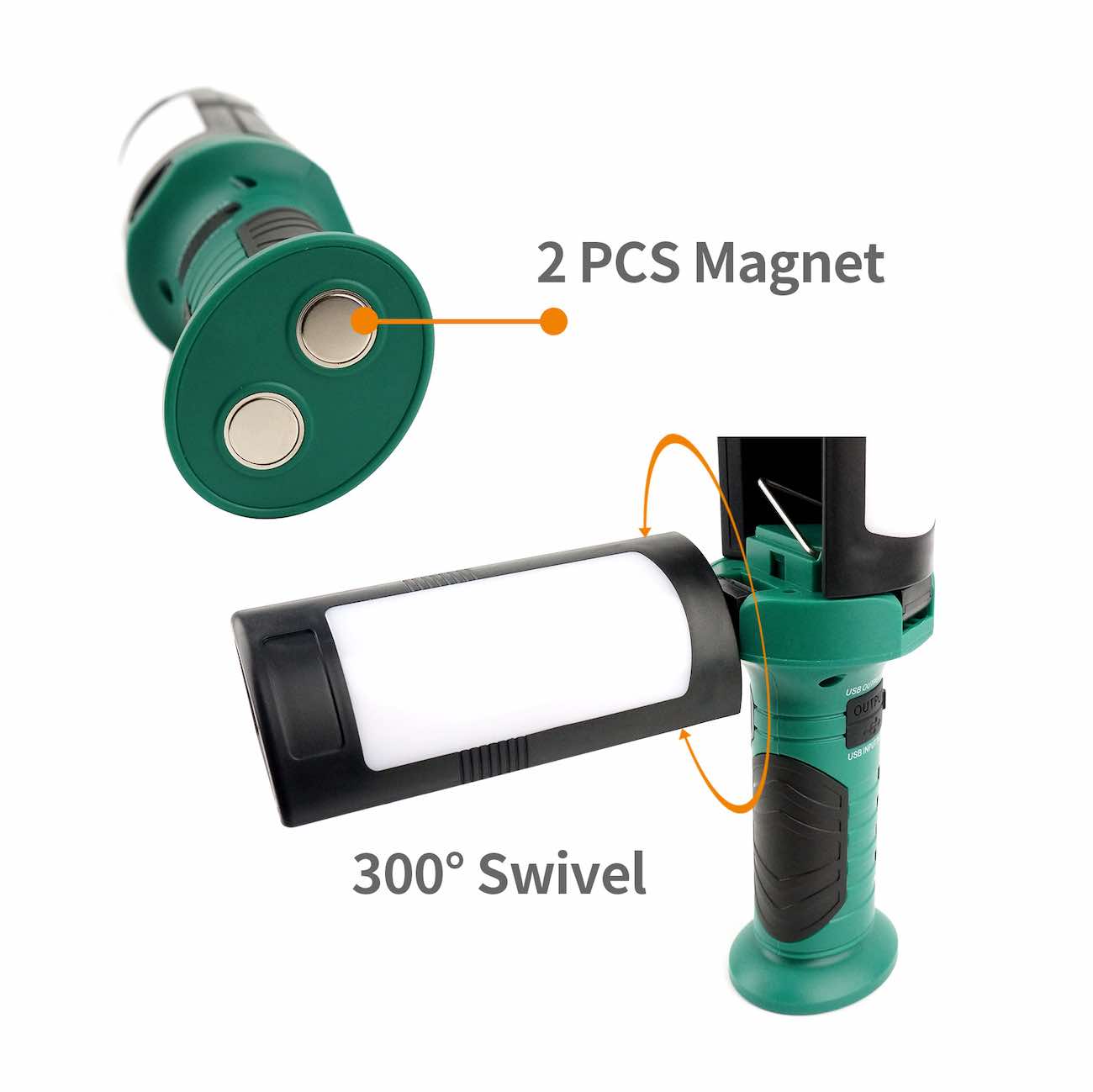 The flashlight has a brightness of 150 lumens, while the side panels have a brightness of 600 lumens.