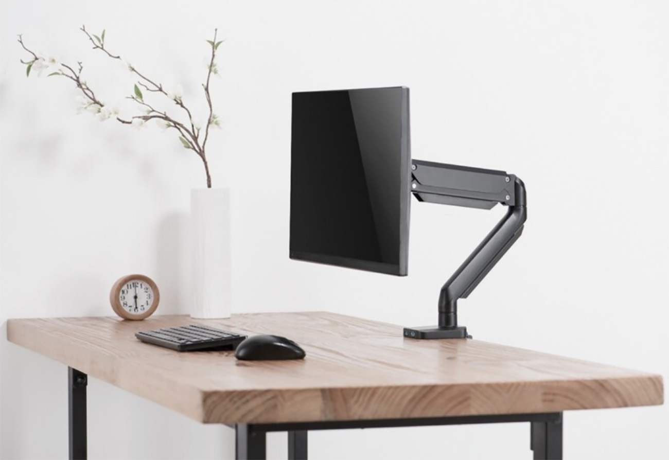 Flexible monitor stand for practical desk mounting.