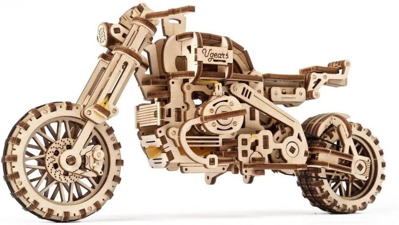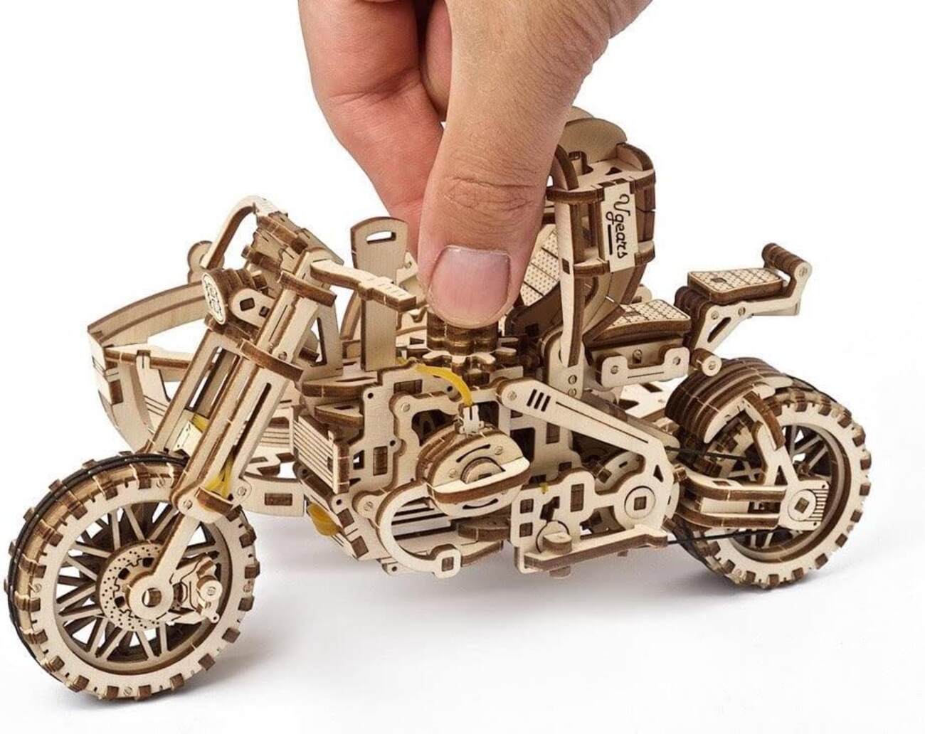 Interested in jigsaw and assembly games? We present this fun game from Ugears .. a mechanical model kit with a 3D design of a Scrambler motorcycle (model UGR-10).